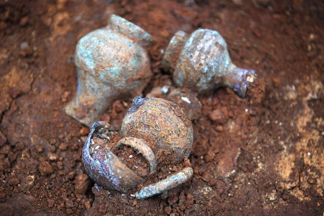Trong lăng mộ hoàng gia thuộc triều đại Hoàng đế Lưu Hà này, các chuyên gia tìm thấy các con dấu, đá quý, nút tre, và một chiếc vòng bạc. Ảnh: @ Hiệp hội Khoa học Xã hội Trung Quốc.