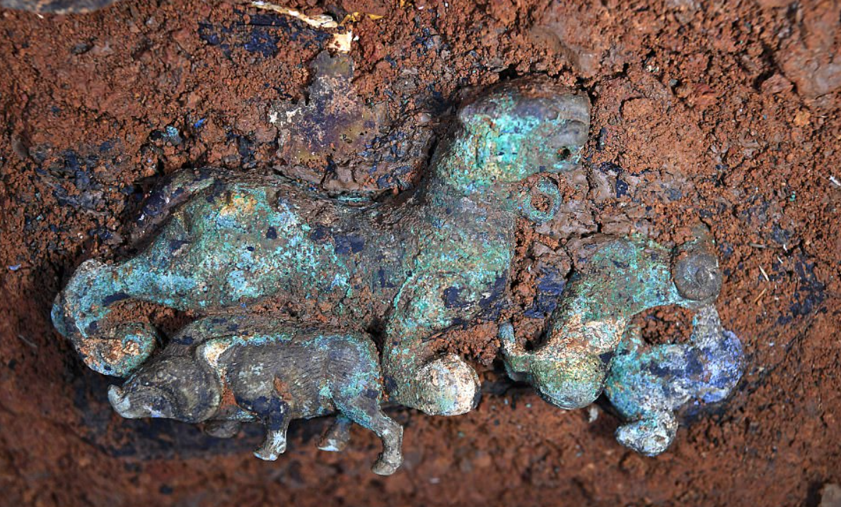 Đặc biệt, họ tìm thấy đồ chơi của hoàng tử tên là Lưu Trùng Quốc, con trai của Hoàng đế Lưu Hà, đồ chơi này bao gồm các tượng đất sét hình con báo, con vật và lợn lòi. Ảnh: @ Hiệp hội Khoa học Xã hội Trung Quốc.