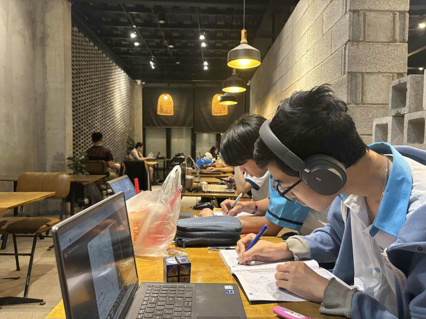 Không chỉ sinh viên, nhiều học sinh cấp 3 cũng chọn quán cà phê làm nơi "chạy" bài vở. Ánh sáng dịu, ghế ngồi thoải mái, wifi "chạy phà phà"… Tất cả tạo nên một "lớp học thứ hai" giữa lòng thành phố.