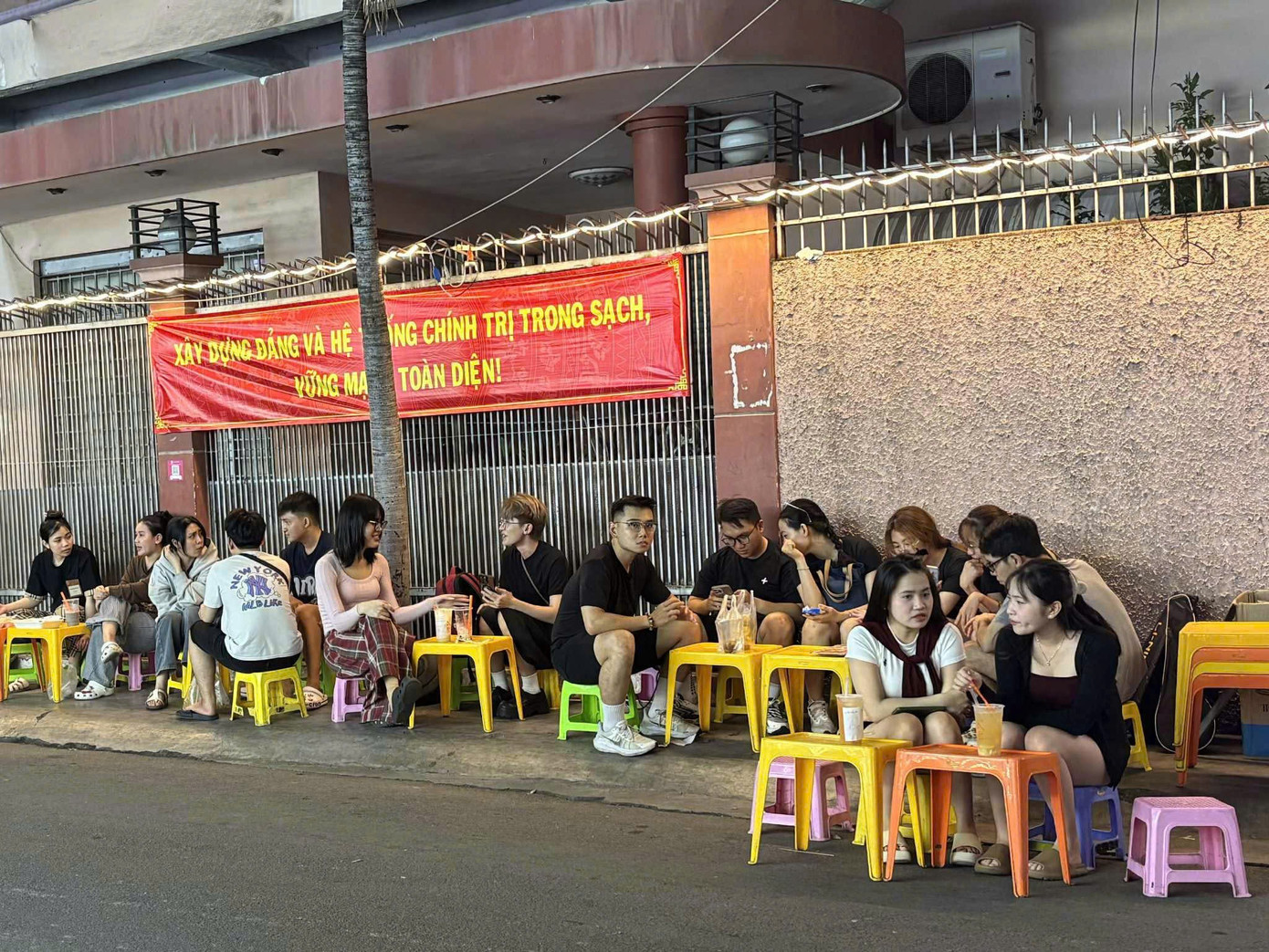 Khác với sự yên tĩnh trong quán máy lạnh, vỉa hè lại là một "thế giới" đầy tiếng cười, thoáng gió và cảm giác gần gũi.