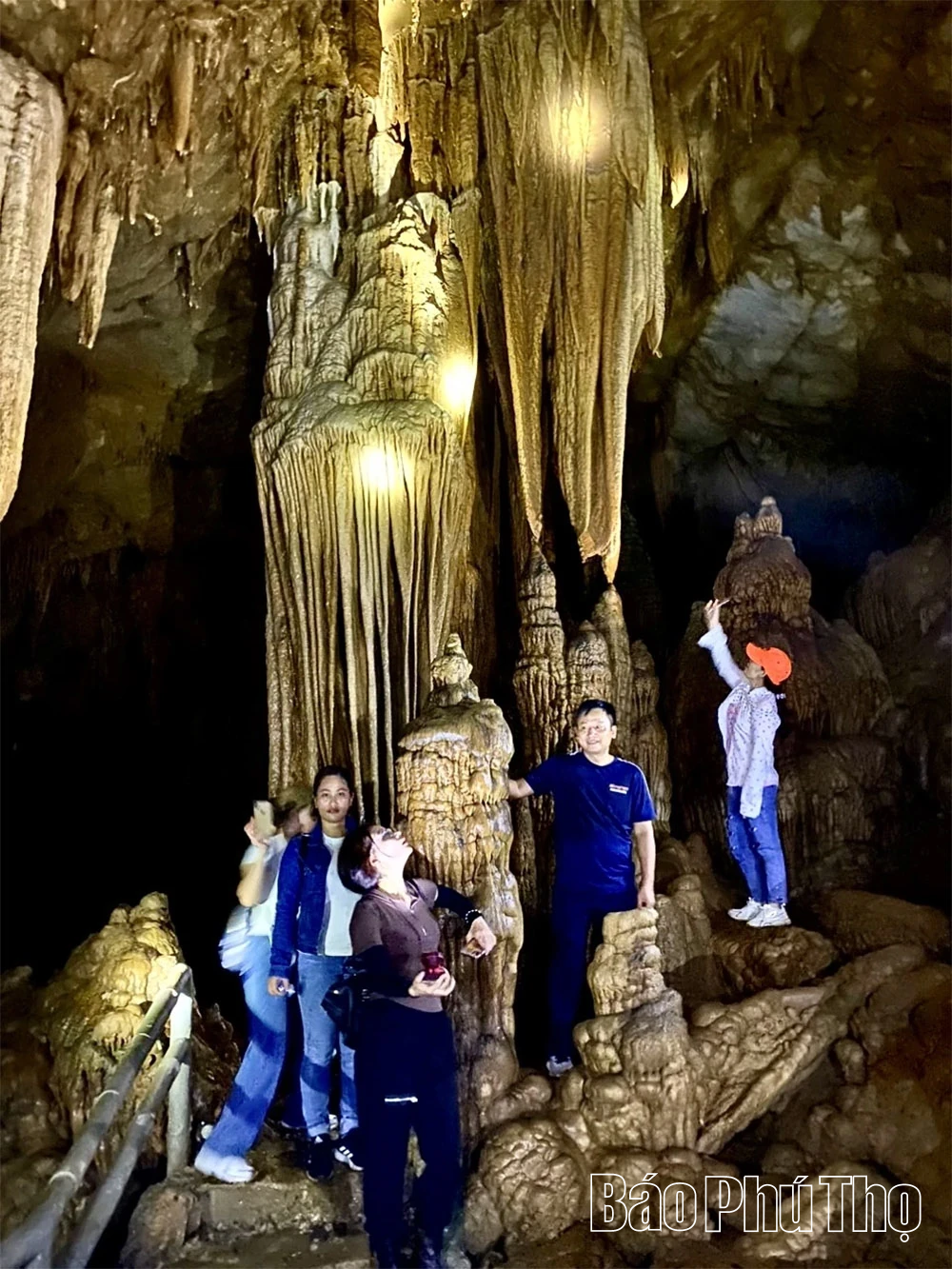 Du khách chiêm ngưỡng vẻ đẹp huyền ảo, các khối nhũ đá muôn hình vạn trạng trong lòng động Nam Sơn thuộc xóm Tớn, xã Vân Sơn.