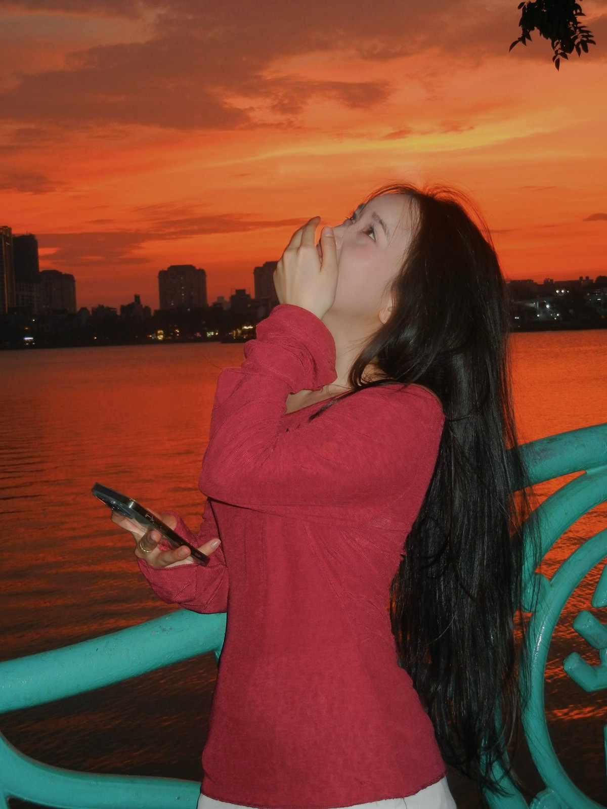 Dừng chân tại quán cà phê ven hồ, thưởng thức ly latte nóng và ngắm mặt trời lặn, giữa không khí se lạnh cùng hương hoa sữa thoang thoảng, là khoảnh khắc khiến ai cũng muốn lưu giữ trọn vẹn. Ảnh nguoihanoi