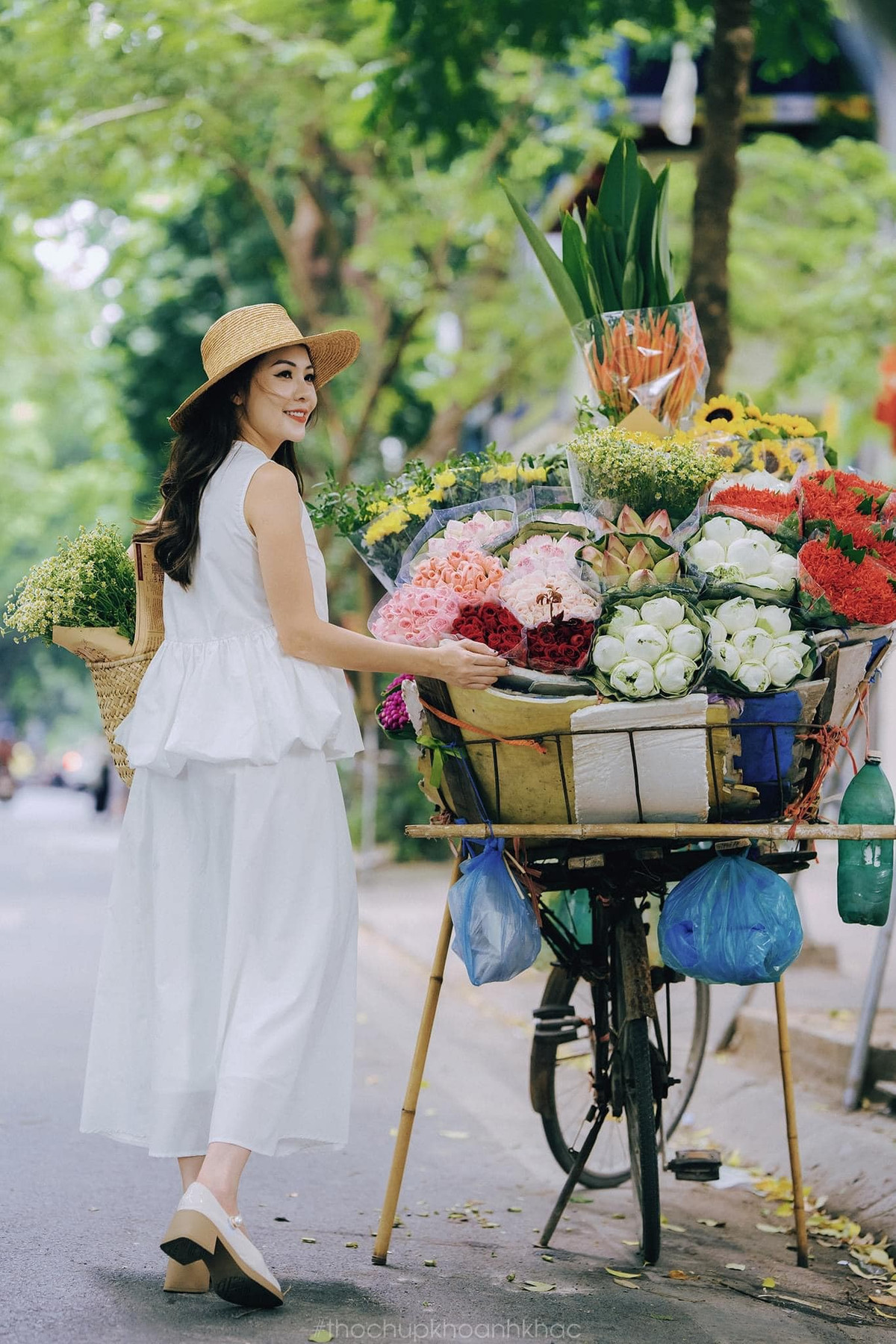 Mỗi mùa thu về, con phố trở thành điểm hẹn quen thuộc của giới trẻ với những bức ảnh tà áo dài trắng, bó cúc họa mi tinh khôi bên hàng cây vàng – một hình ảnh vừa lãng mạn, vừa đậm chất Hà Nội. Ảnh Trung Nguyen