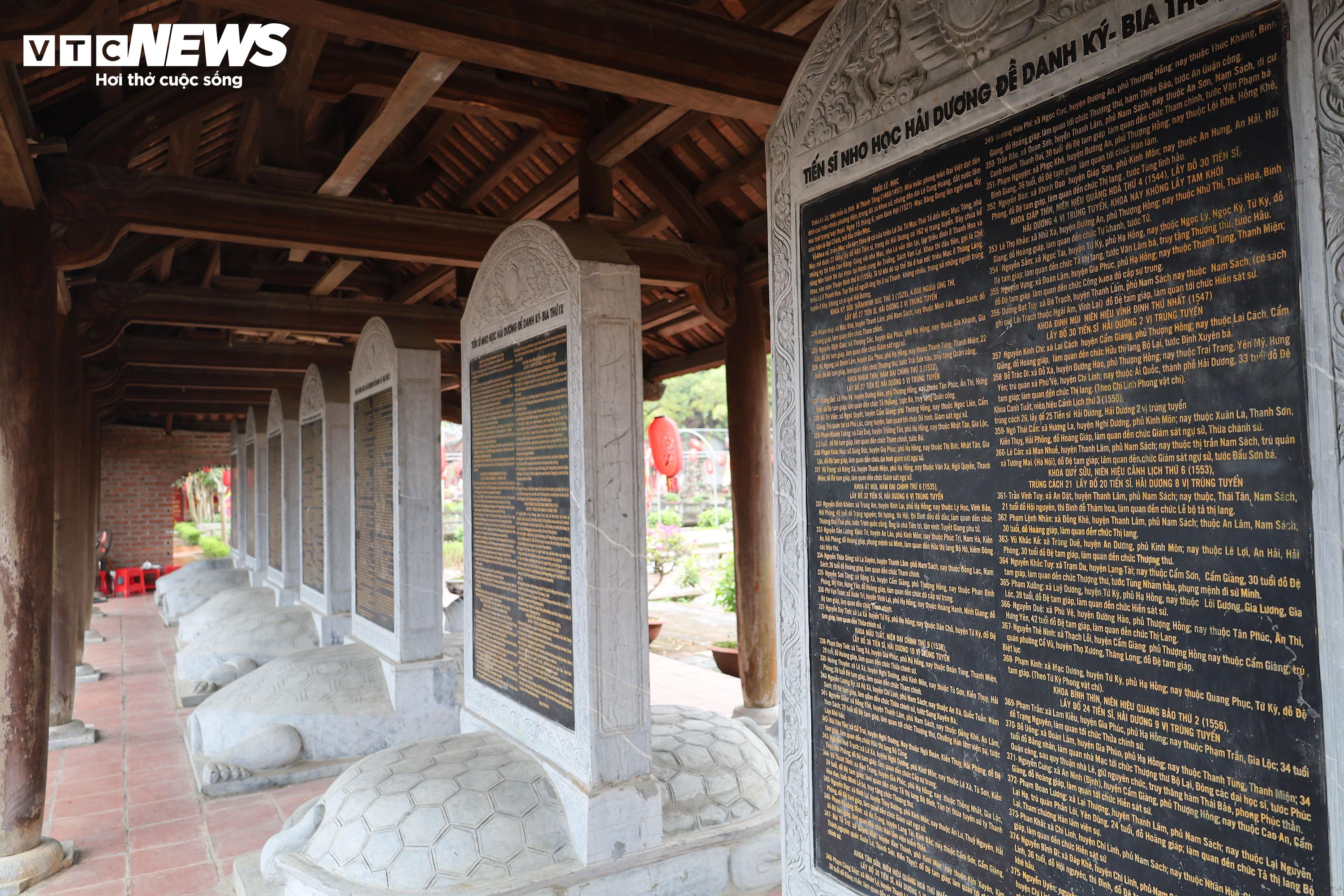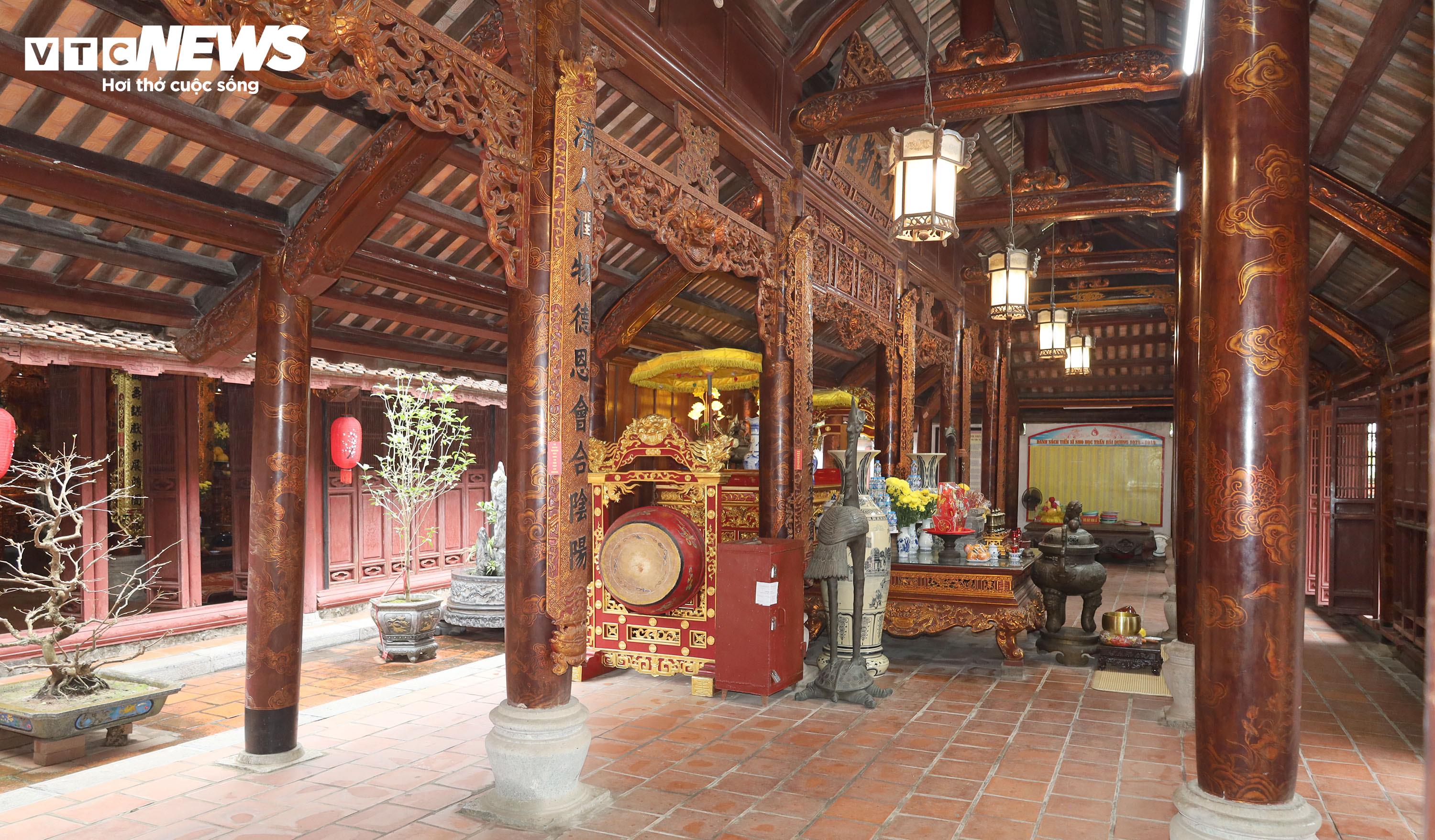 Tòa bái đường là nơi đặt bàn thờ chung cho 637 vị tiến sĩ. Sau tòa bái đường là gian hậu cung có ban thờ Khổng Tử, Chu Văn An và các vị đại khoa của Hải Dương.
