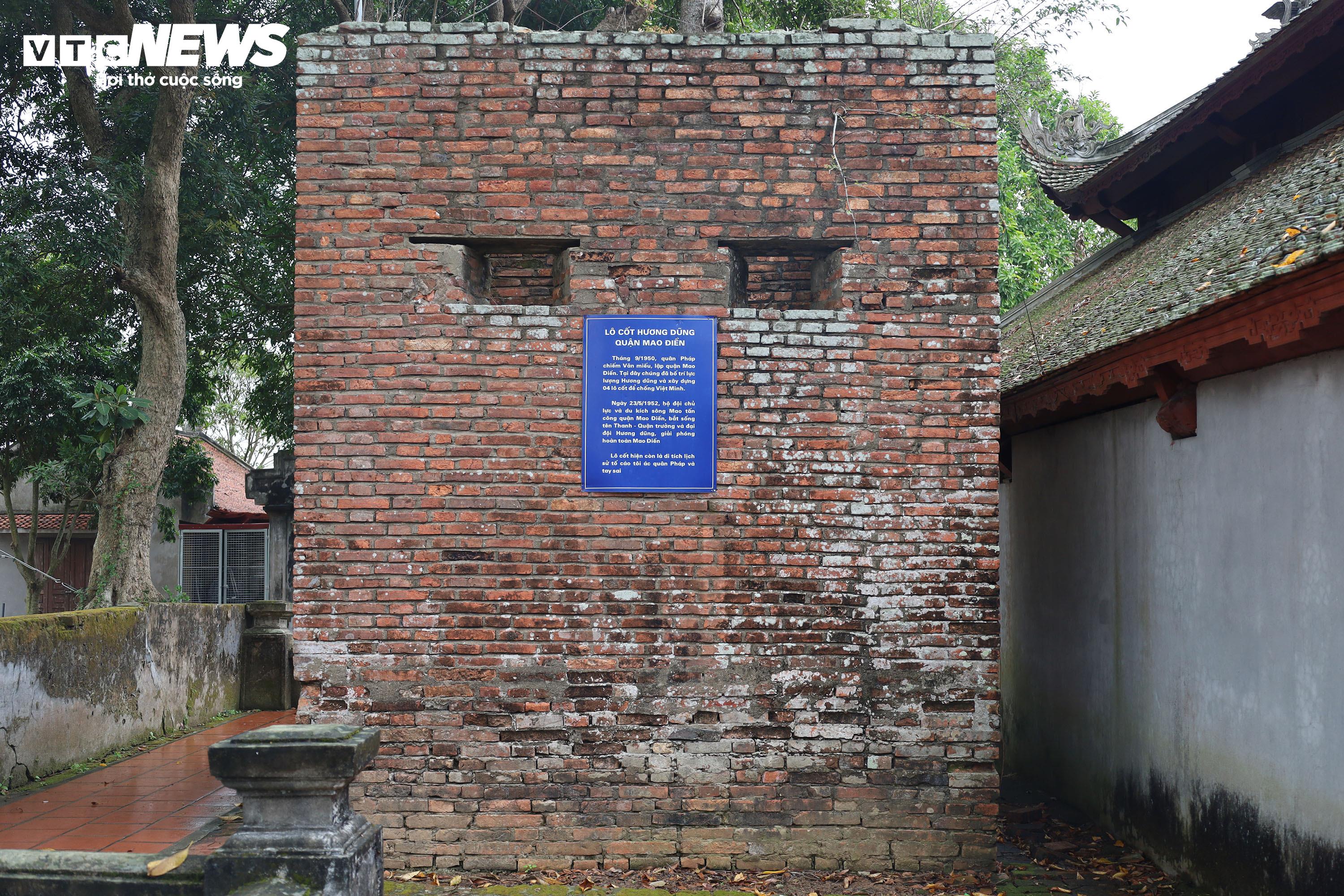 Trong khuôn viên Văn miếu Mao Điền hiện vẫn còn lưu giữ dấu tích lô cốt từ thời kháng chiến chống thực dân Pháp, được xem là một chứng nhân lịch sử.