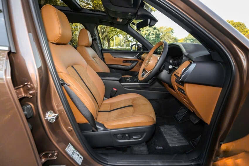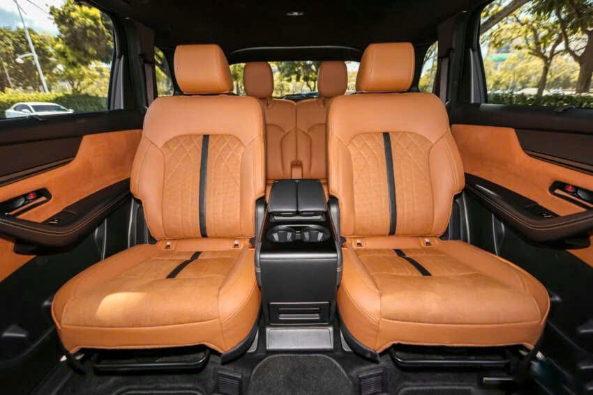 Khoang lái xe sở hữu màn hình kỹ thuật số 12,3 inch và màn hình thông tin giải trí cũng 12,3 inch với Apple CarPlay không dây và Android Auto có dây. Hàng ghế thứ hai là hai ghế “captain” với chức năng sưởi, thông gió và điều chỉnh điện, kèm console trung tâm. Hàng ghế thứ ba được thiết kế dạng 50:50 có thể gập linh hoạt. Xe trang bị ghế da Nappa màu tan, hệ thống âm thanh Bose 12 loa, 6 cổng USB-C, sạc không dây và ổ điện 12 V.