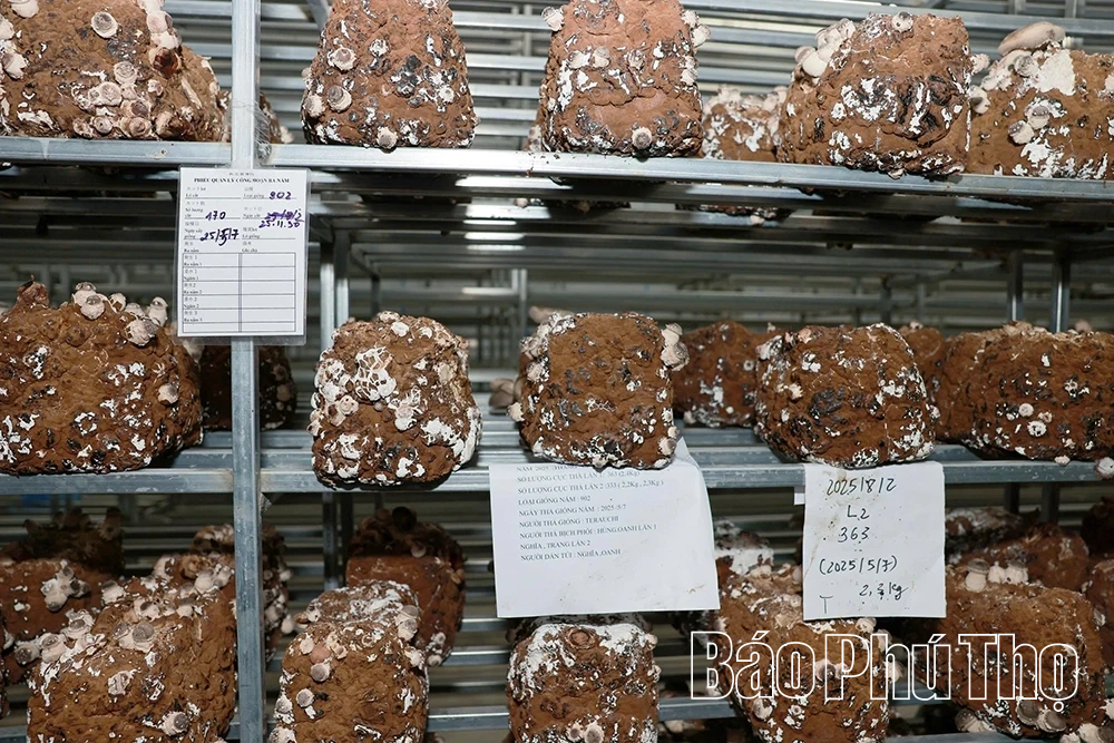 Sau thời gian chăm sóc, những bầu nấm sinh trưởng, phát triển tốt, sẵn sàng chuyển sang phòng thu hoạch