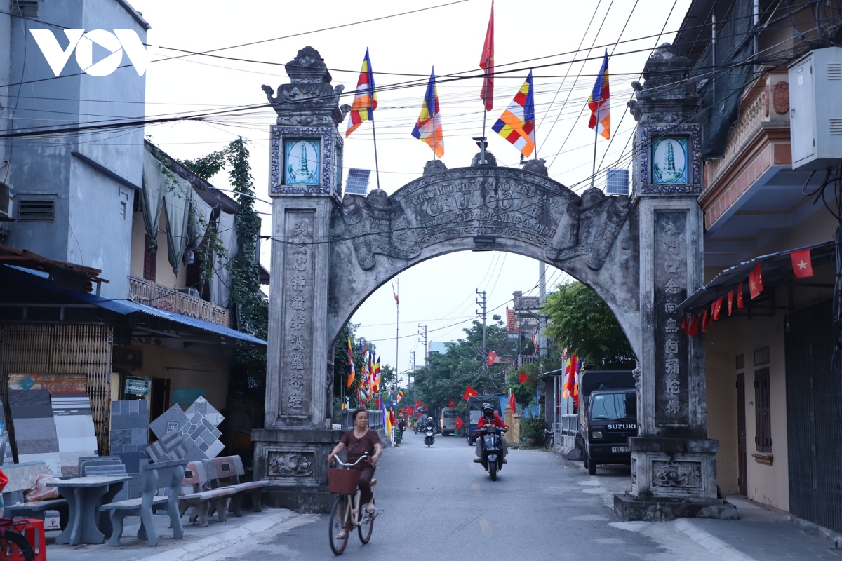 Chùa Trình (Phật giáo Hội Quán) được xây dựng từ năm 1936, trùng tu năm 2001 thờ tượng Phật Quan Âm nghìn tay. Trước sân có hai lư đồng khổng lồ. Bên trái là đền Linh Quang Từ (xây năm 1937) thờ Trần Hưng Đạo cùng hai tiến sĩ họ Đào là Đào Sư Mỗ và Đào Toàn Mỗ; bên phải là Khánh Quang Phủ, thờ Tam Tòa Thánh Mẫu.