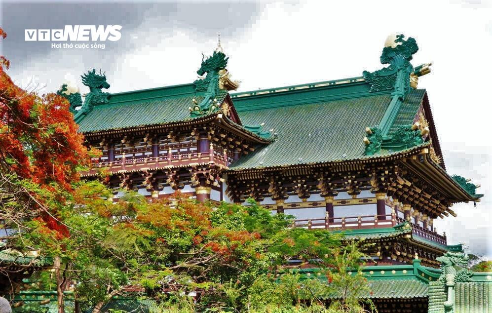 Màu xanh rêu cổ kính, phủ lên những chi tiết kiến trúc tinh xảo, tạo nên một không gian chùa Minh Thành trang nghiêm và thơ mộng.