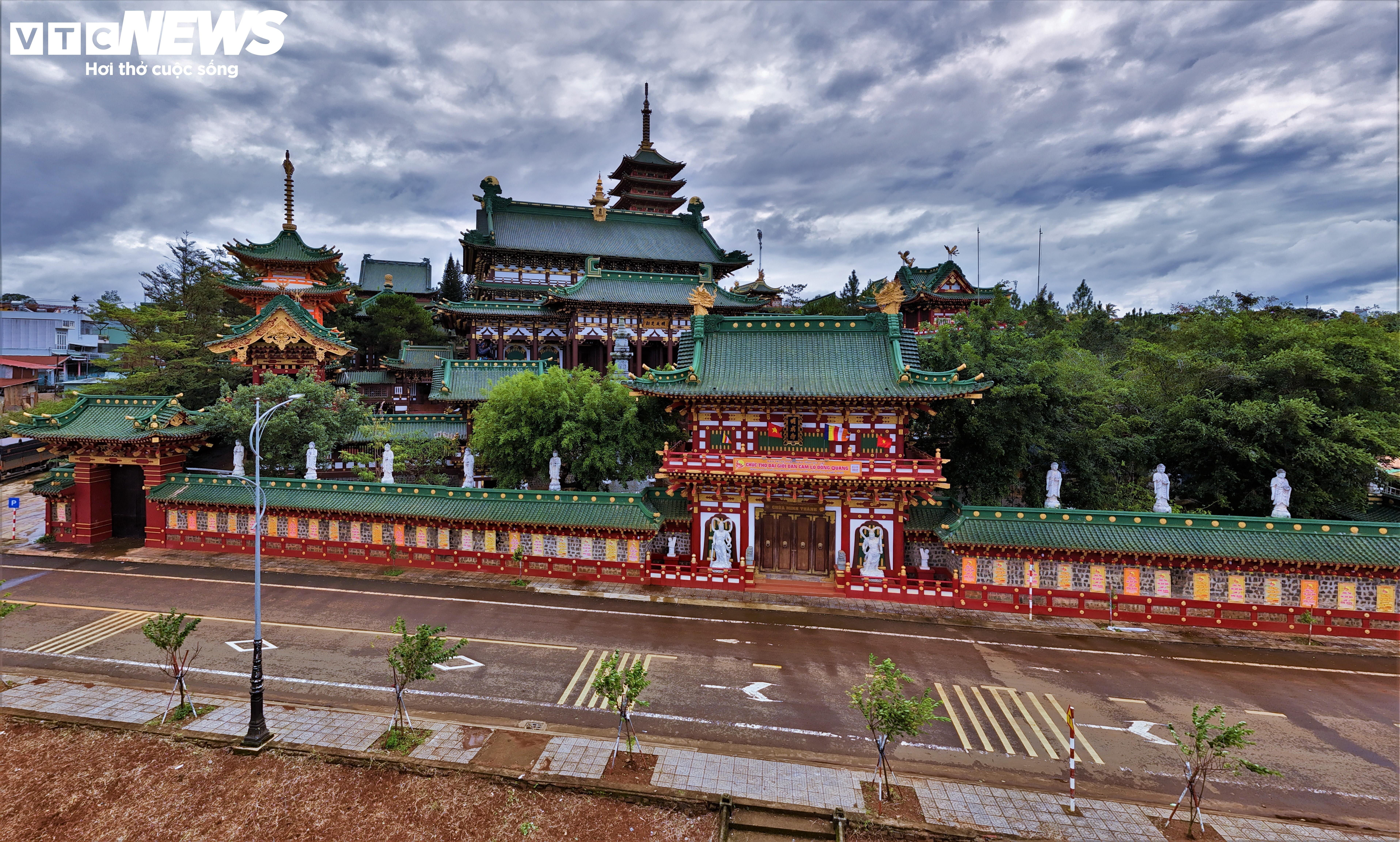 Chiêm ngưỡng chùa Minh Thành giữa lòng phố núi từ trên cao.