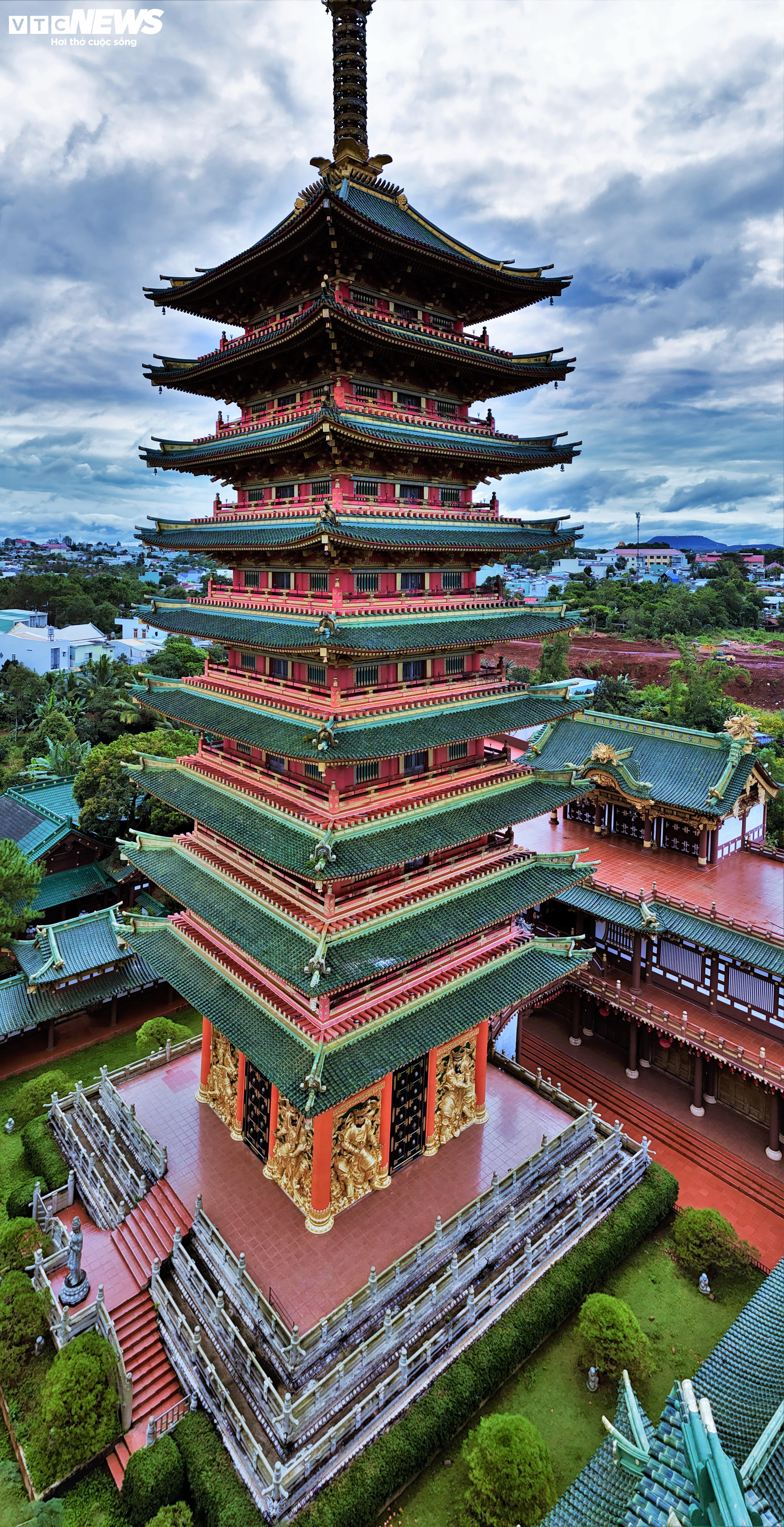 Nhìn từ trên cao, chùa Minh Thành trông như một "cung điện" tâm linh bề thế, mang đậm phong cách kiến trúc Á Đông đầy ấn tượng.