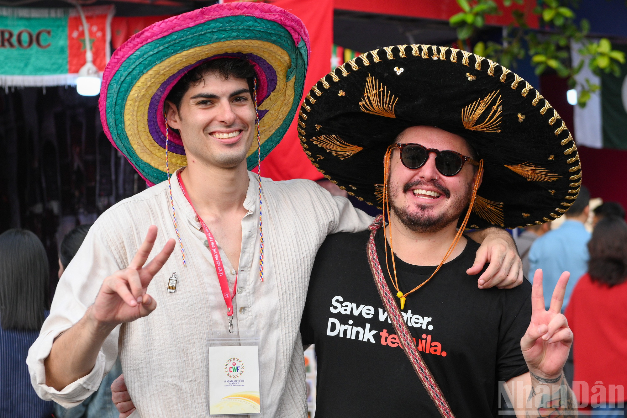 Tại lễ hội Văn hóa thế giới, khách tham quan có thể ghé thăm các gian hàng đến từ Trung Quốc, Hàn Quốc, Nhật Bản, Hoa Kỳ, Nga, Pháp, Iran, Angola, Lào, Philippines..., khám phá đặc trưng về lịch sử, nghệ thuật, ngôn ngữ, trang phục và phong tục của từng quốc gia.