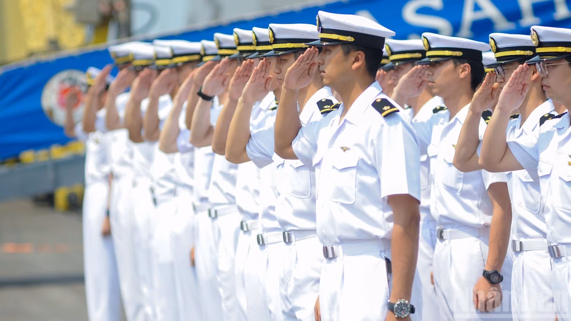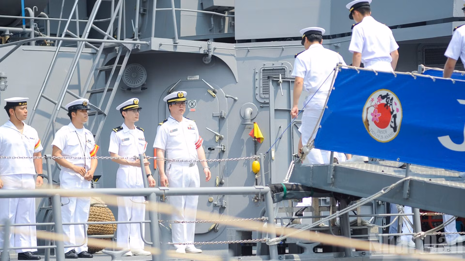 Tại lễ đón tàu, tàu hộ vệ Asahi của lực lượng tự vệ trên biển Nhật Bản có khoảng 220 sĩ quan, thủy thủ.