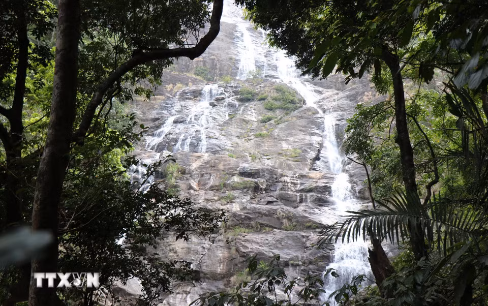 Thác Lụa dưới tán rừng nguyên sinh. (Ảnh: Phạm Cường/TTXVN)