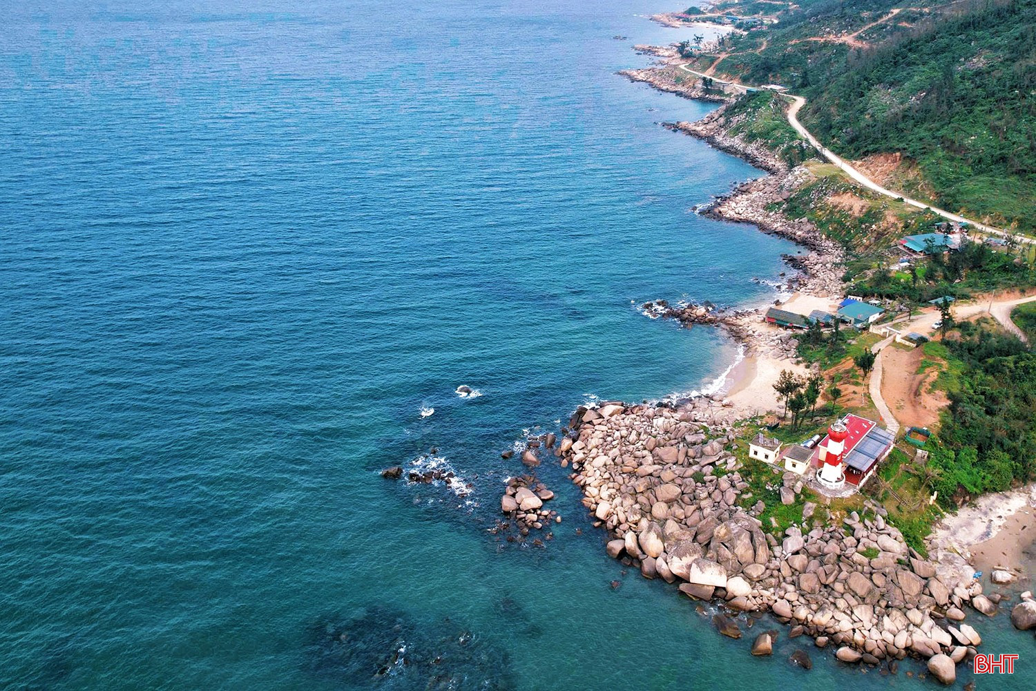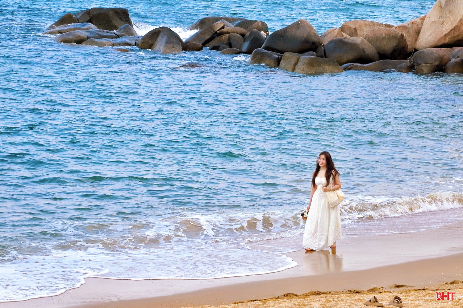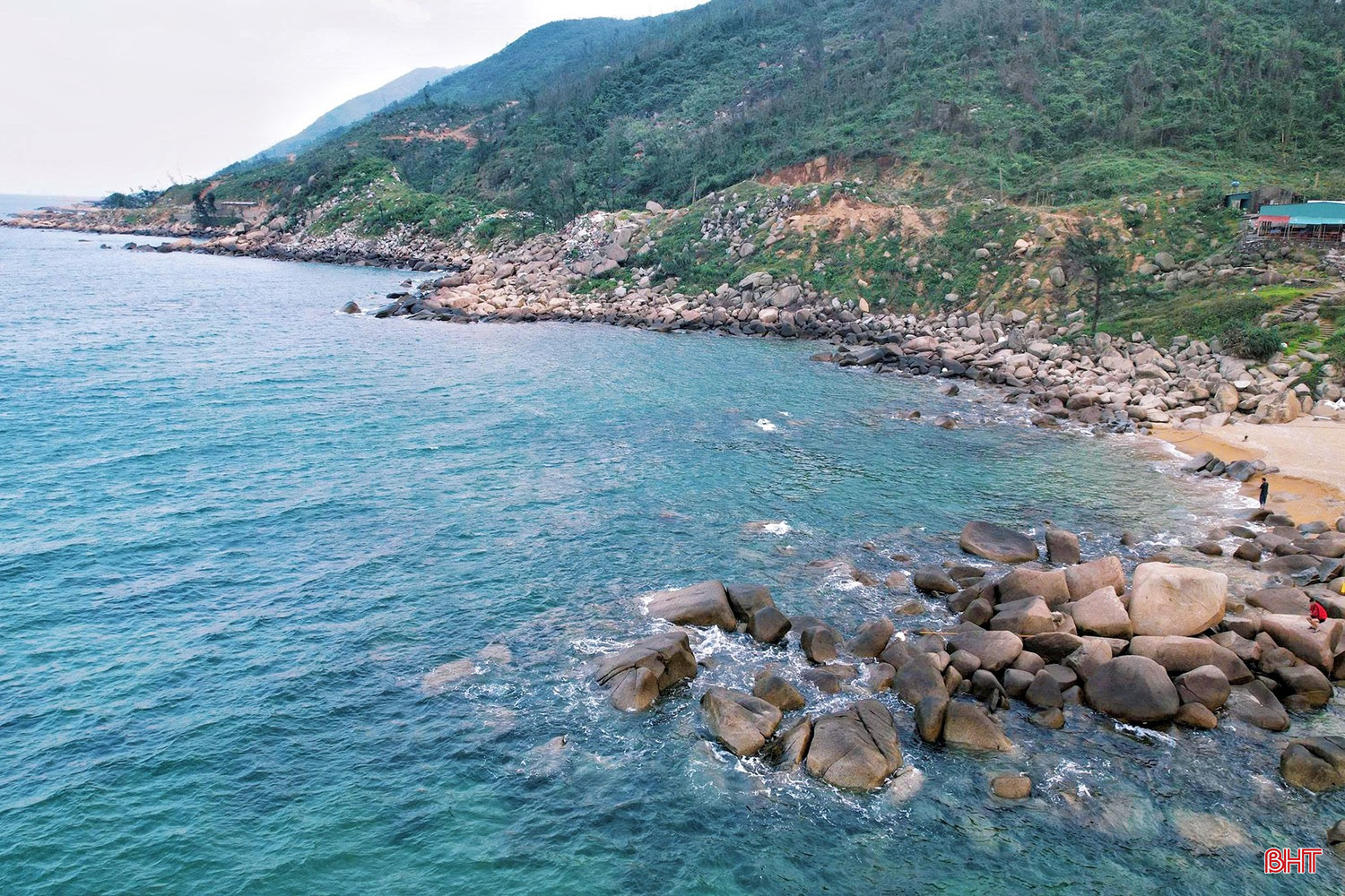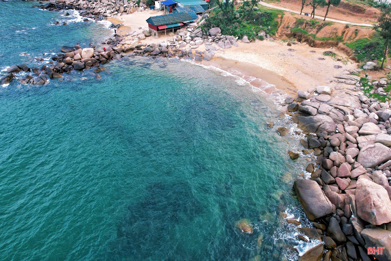Xen kẽ giữa các triền đá là những bãi cát trắng mịn, bờ biển thoải, làn nước êm, thích hợp cho các hoạt động tắm biển, vui chơi và trải nghiệm không gian biển trong lành, yên bình.
