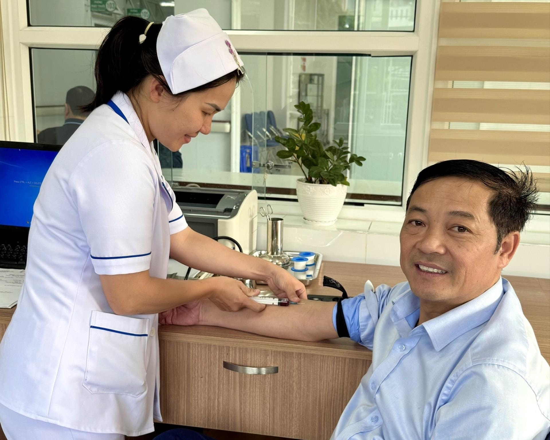 Các đại biểu được lấy máu xét nghiệm và thực hiện khảo sát cận lâm sàng tại Khoa Xét nghiệm, Khoa Chẩn đoán hình ảnh; đồng thời được khám sức khỏe tại Khu khám và Điều trị cán bộ.