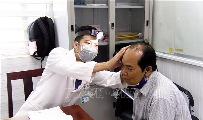 Bác sĩ Bệnh viện Da liễu Thành phố Hồ Chí Minh khám bệnh cho người dân phường Xuân Hòa. Ảnh: Đinh Hằng/TTXVN
