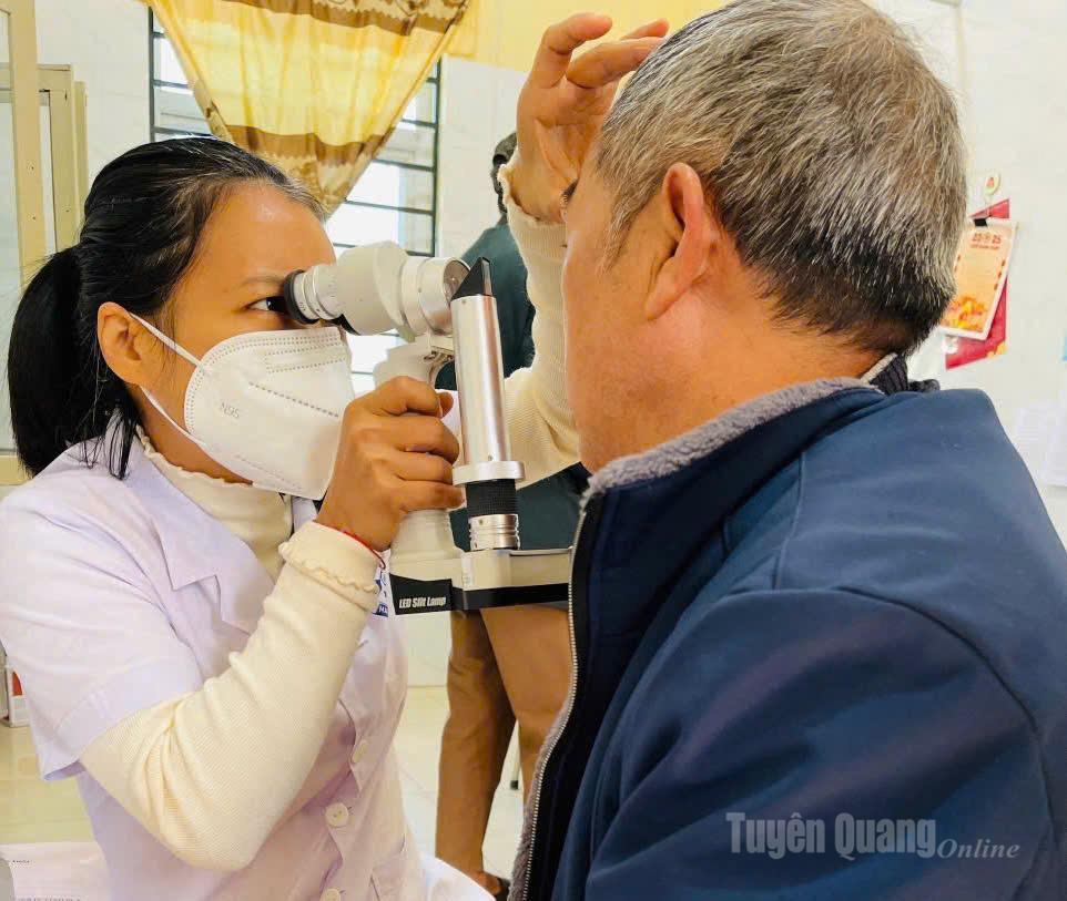 Bác sĩ khám sàng lọc cho người cao tuổi tại xã Bạch Ngọc.