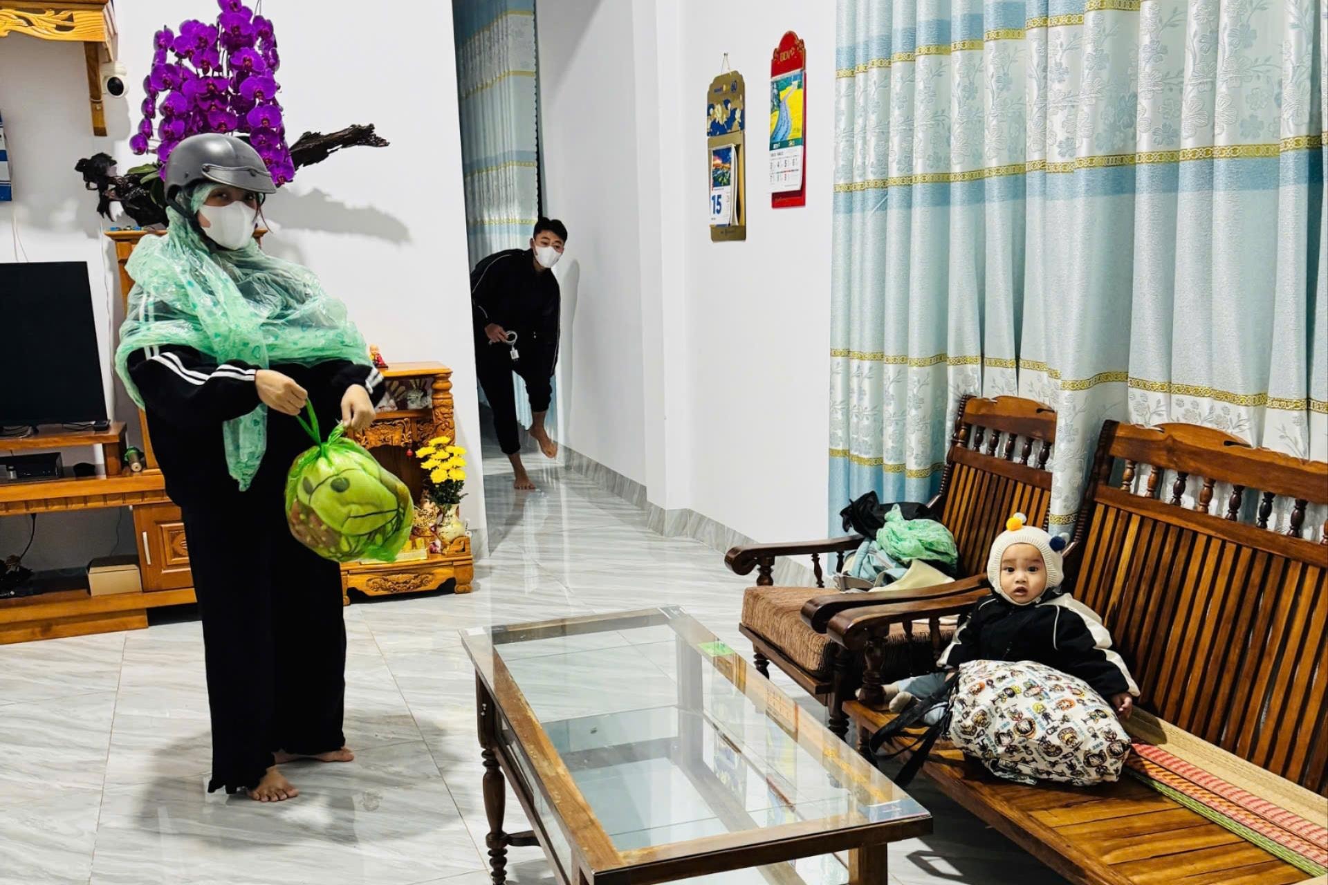Người dân chuẩn bị quần áo để di dời tới nơi trú ẩn an toàn