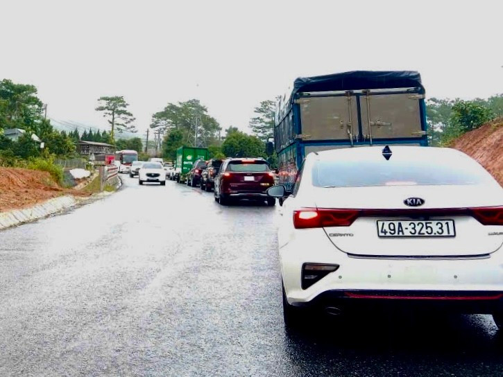 Xe ô tô nối đuôi nhau trên đèo Mimosa.