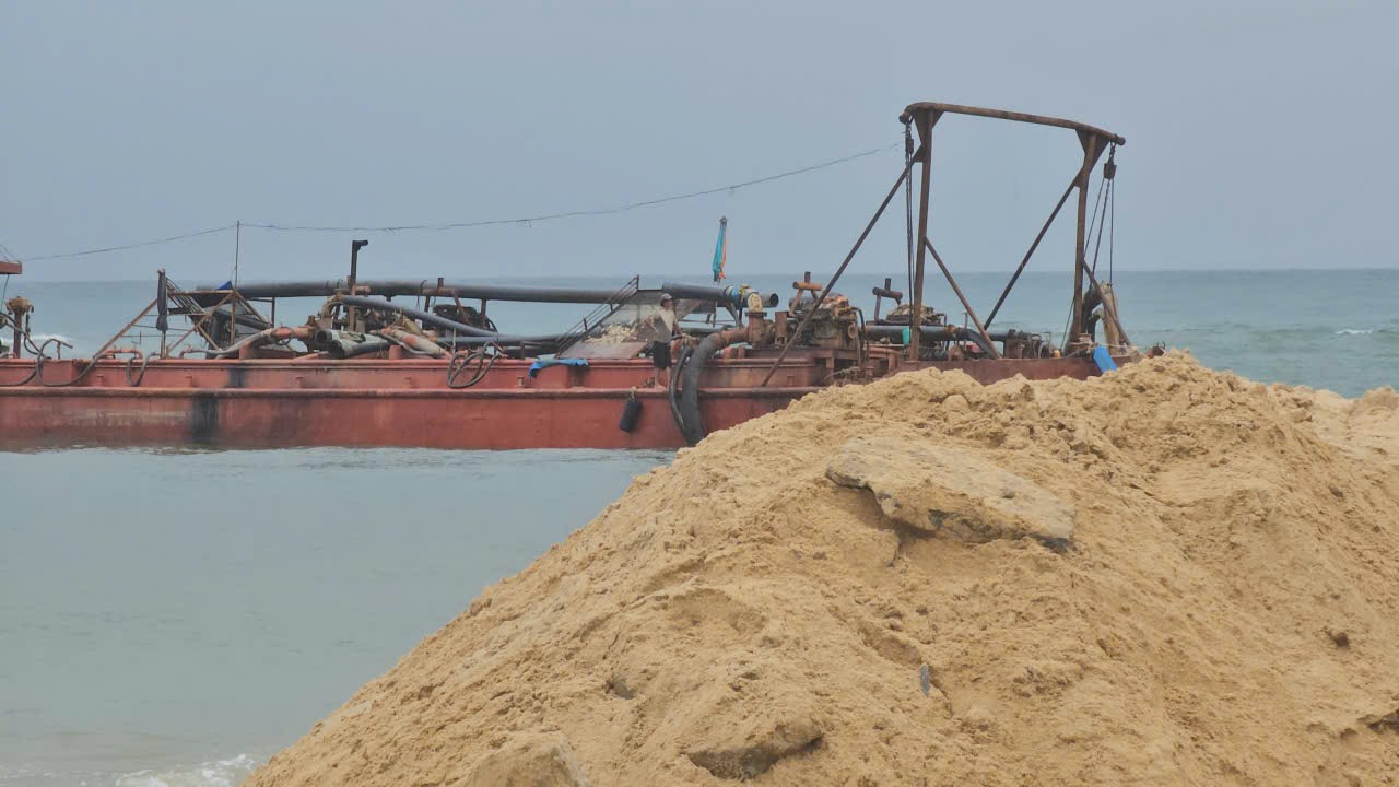 Video: Máy móc thi công kè mềm nhằm ngăn chặn tình trạng sạt lở, nguy cơ mở cửa biển mới Thuận An