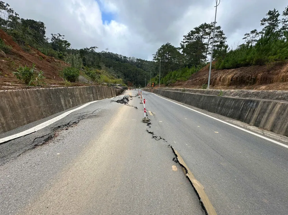 Vết nứt lớn dài 100 m trên Quốc lộ 24