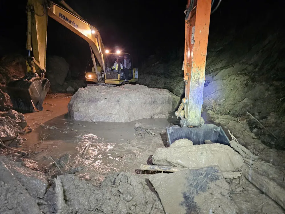 Lực lượng làm nhiệm vụ phải làm việc trong điều kiện thời tiết xấu, mặt đường trơn trượt, nhưng vẫn bám trụ hiện trường suốt đêm nhằm ngăn chặn nguy cơ sạt lở lan rộng.