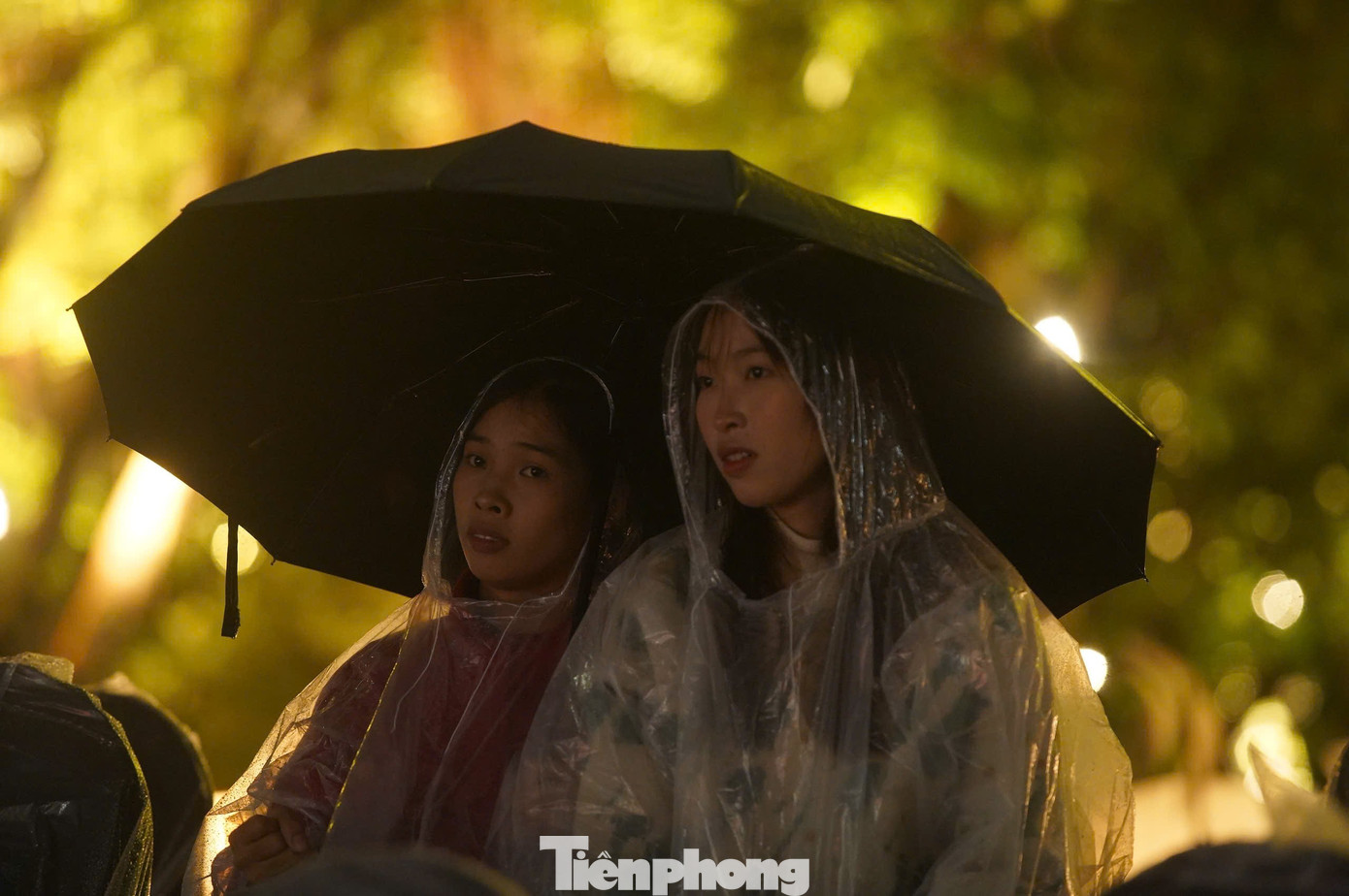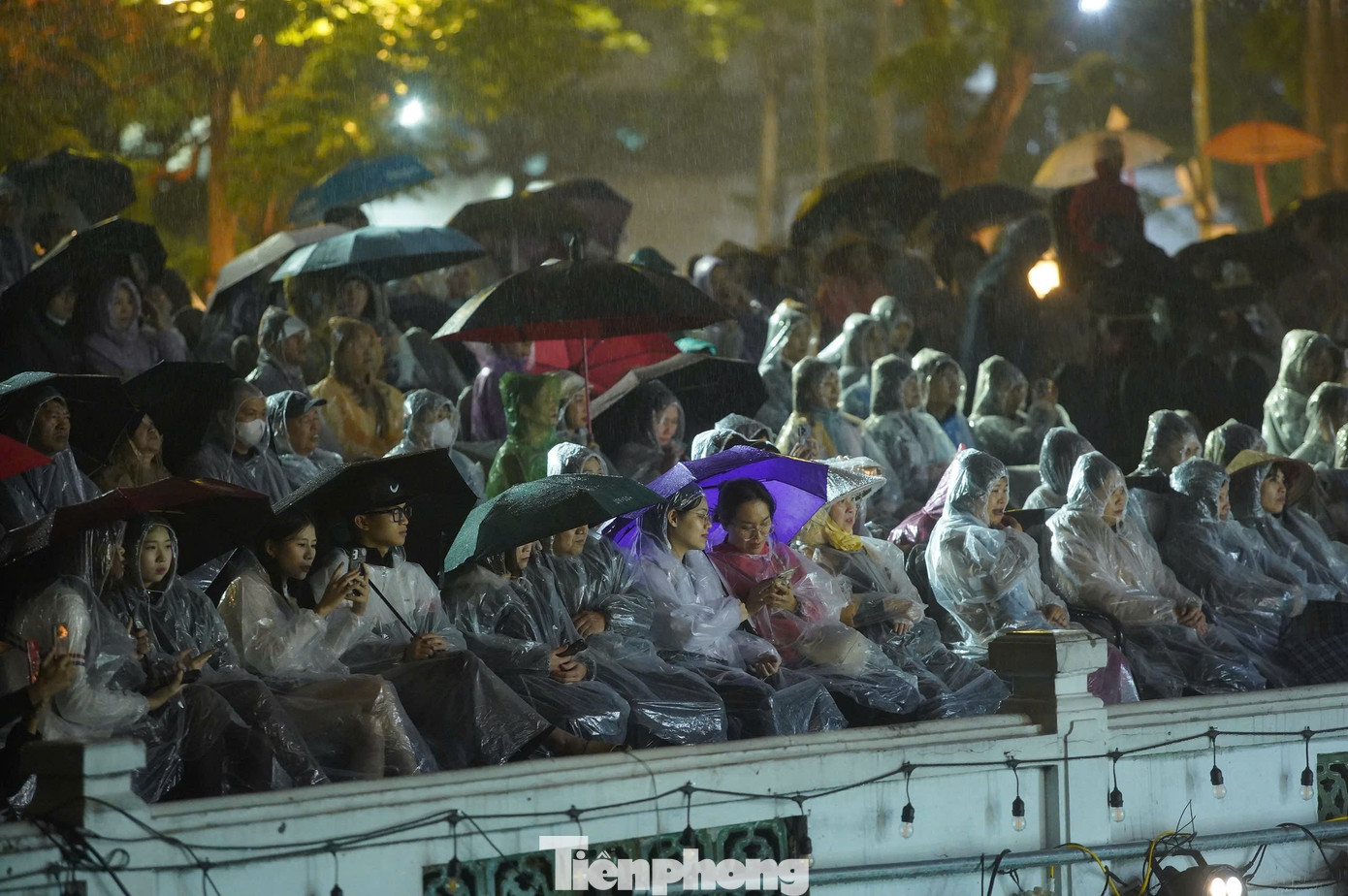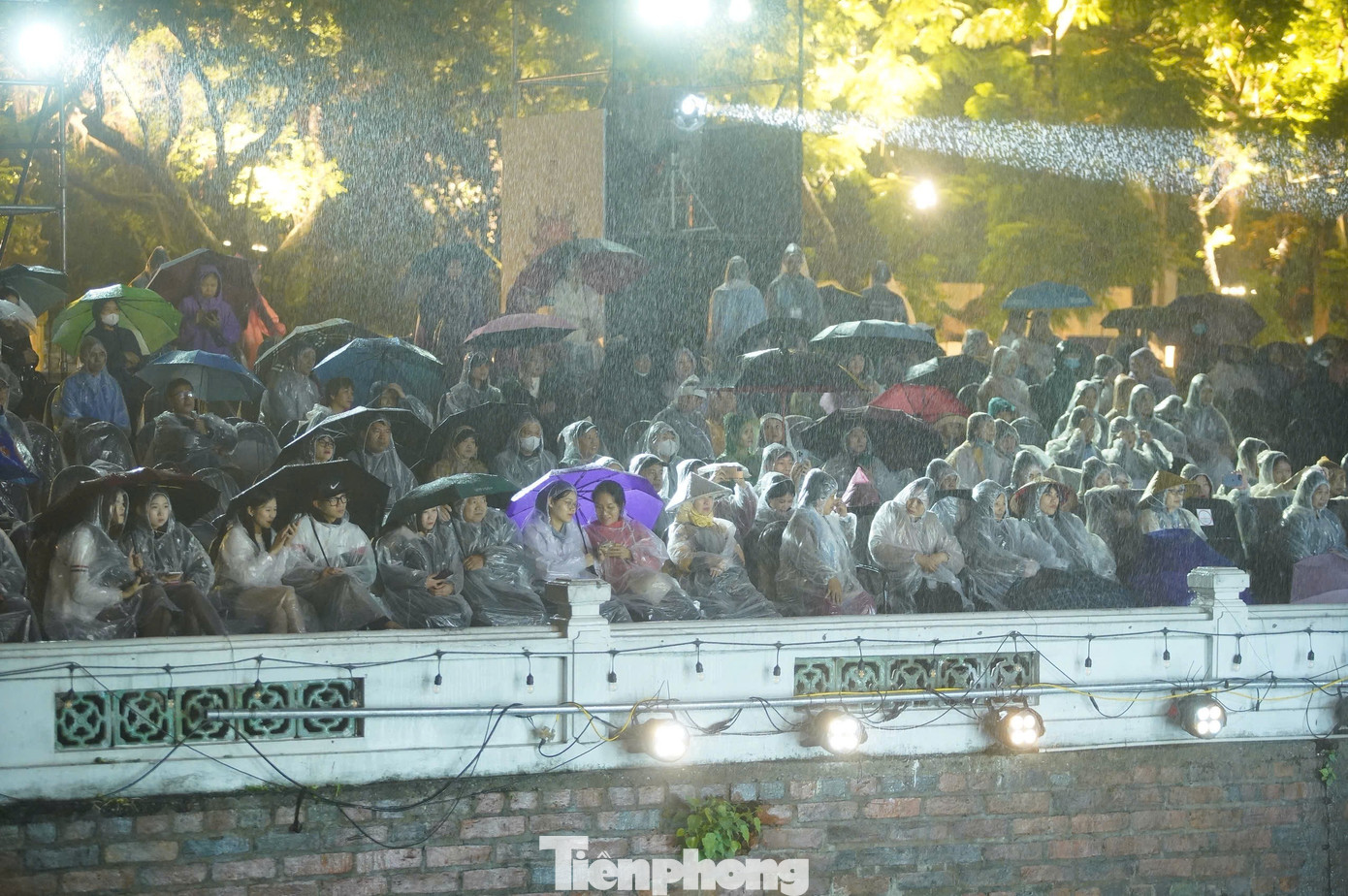 Tối 3/11, Hà Nội đổ mưa lớn nhưng không thể ngăn cản được những trái tim yêu âm nhạc, yêu Thủ đô Hà Nội. Rất đông khán giả mặc áo mưa, che ô bên bờ Hồ Văn để xem chương trình ca nhạc Hà Nội ơi.