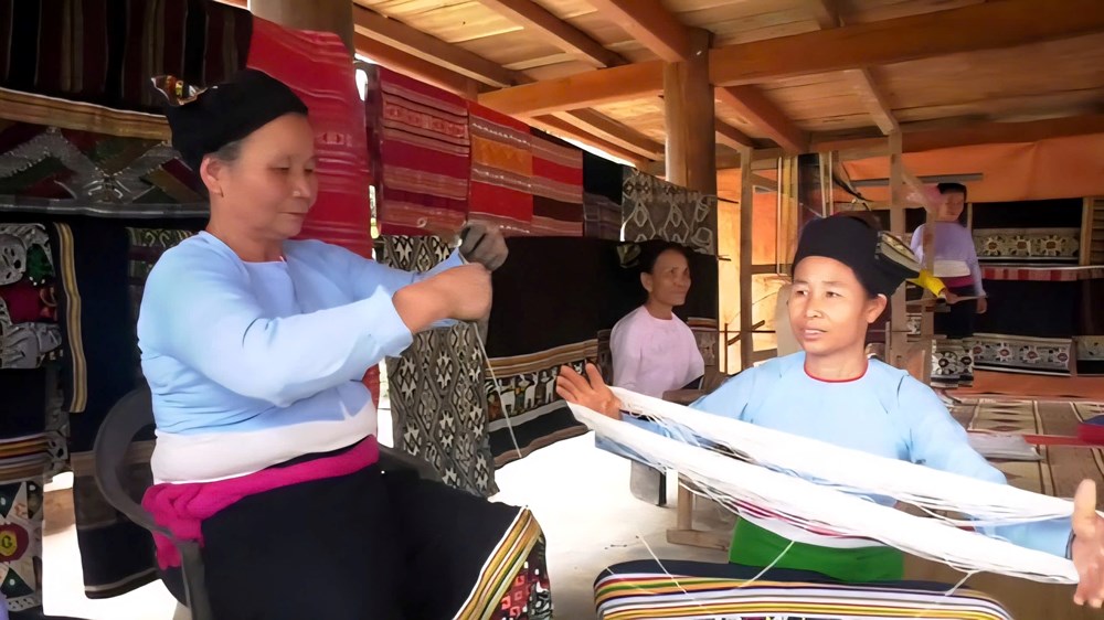 Đôi bàn tay chai sạn nhưng mềm mại trong từng nhịp dệt. Tiếng lách cách đều đặn vang lên như nhịp thời gian chậm rãi, kết nối quá khứ với hiện tại. Trong căn nhà ấy, sắc chỉ đỏ, xanh, vàng, trắng đan quyện cùng mùi sợi bông, mùi lá rừng nhuộm vải, thứ hương quen thuộc của bản làng.