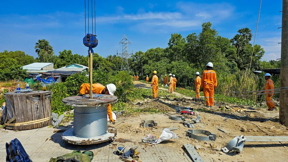 “Hiện các vật tư, máy móc, thiết bị đã được tập kết tại hiện trường và lực lượng thi công đang khẩn trương triển khai đường dây tạm trên không này” - Điện lực An Giang cho biết thêm.