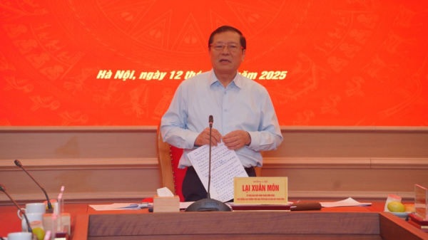 Đồng chí Lại Xuân Môn, Phó Trưởng Ban Thường trực Ban Tuyên giáo và Dân vận Trung ương phát biểu tại phiên họp.