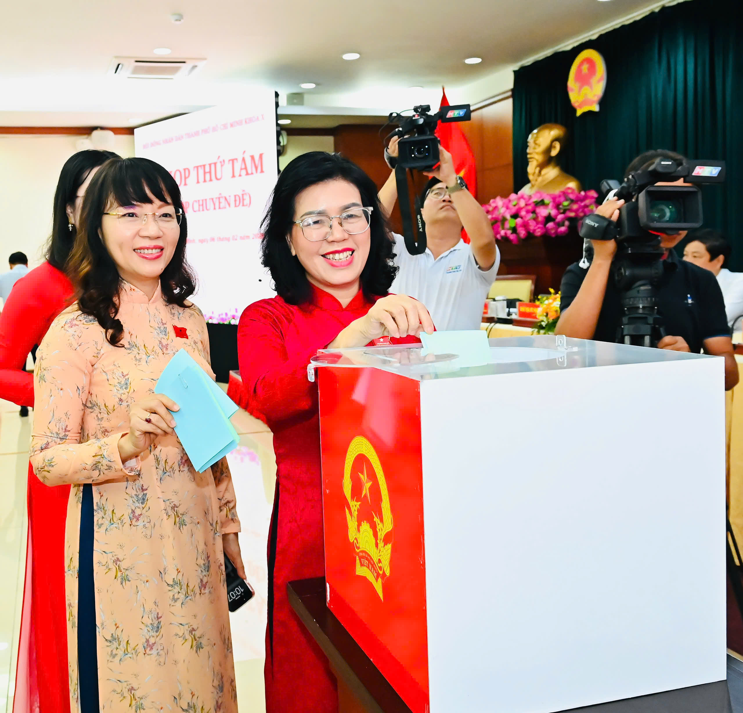 Các đại biểu bỏ phiếu bầu nhân sự tại kỳ họp. Ảnh VIỆT DŨNG