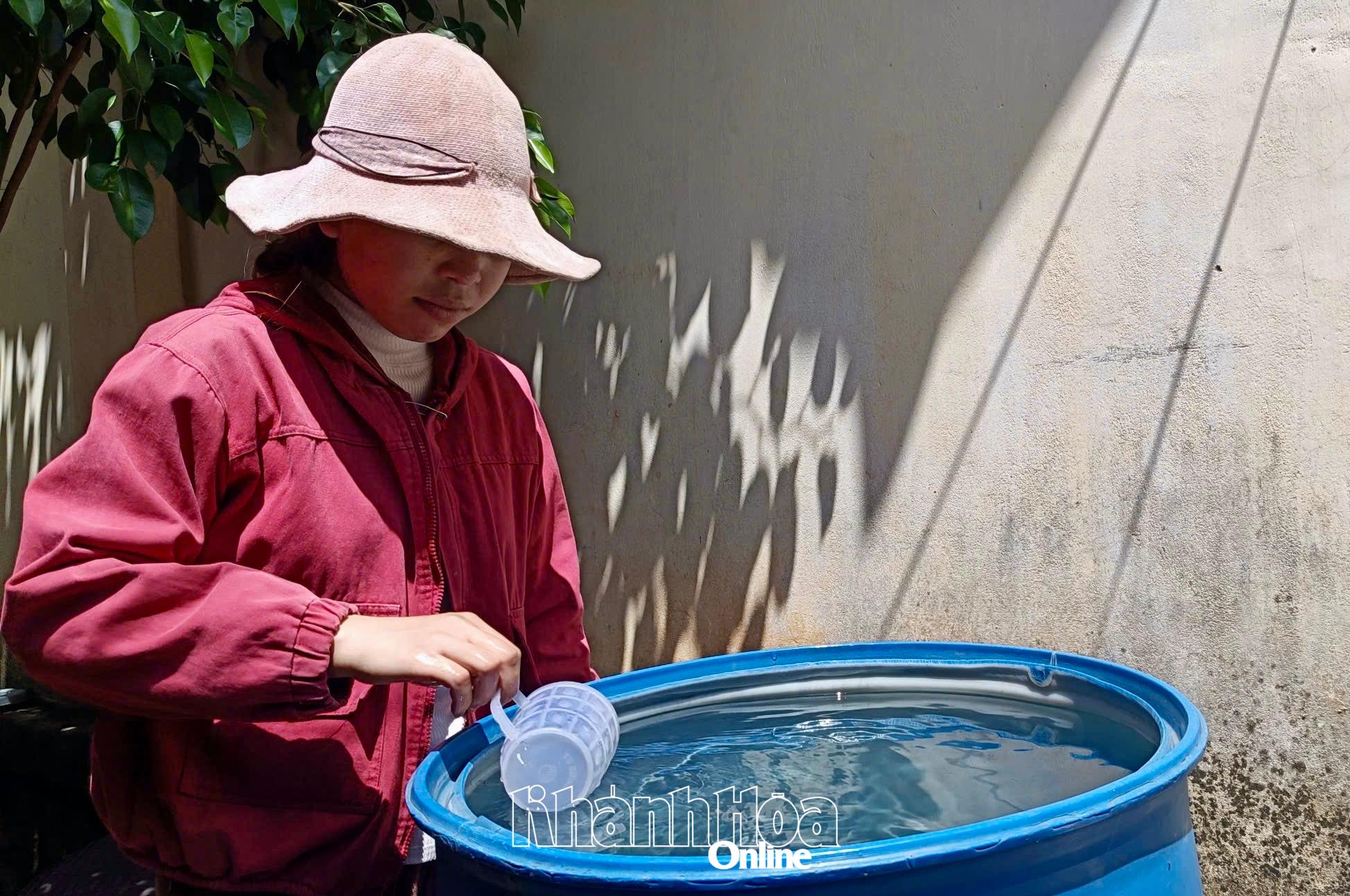 Người dân thôn Bậc Rây 2 phải tích nước mưa hoặc lấy nước sông, suối về sử dụng.