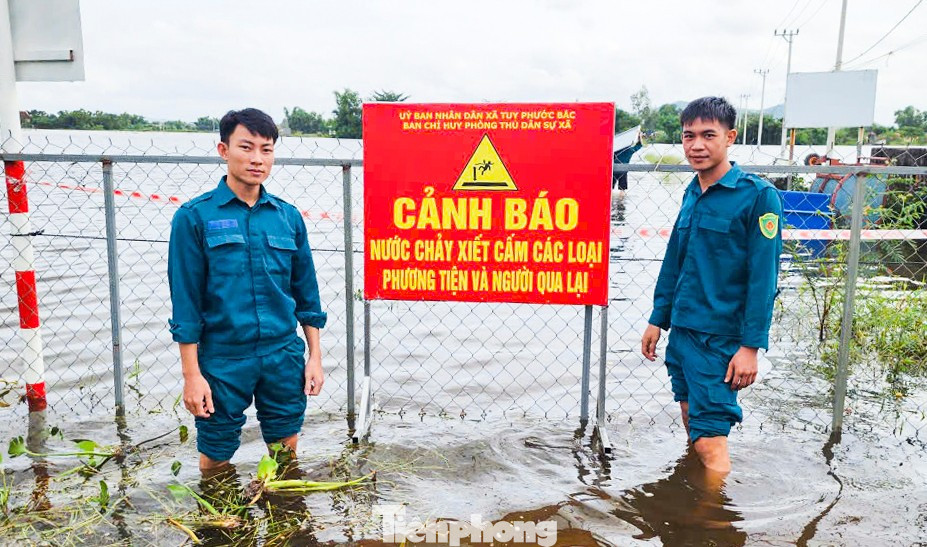 Những ngày qua, do ảnh hưởng của mưa lớn và việc điều tiết tăng lưu lượng nước từ Hồ Định Bình, mực nước ở hạ nguồn Sông Kôn chảy qua địa bàn xã Tuy Phước Bắc tăng nhanh, gây ngập và tạm thời chia cắt một số tuyến đường trên địa bàn xã, chính quyền địa phương đã chỉ đạo các lực lượng túc trực 24/24, cắm biển cảnh báo và lắp đèn tín hiệu ban đêm, tuyệt đối không cho người dân qua lại khu vực nguy hiểm.