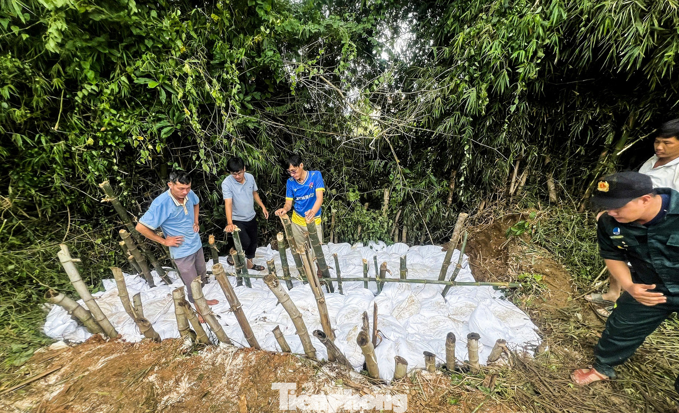 Theo lãnh đạo xã, mưa lớn những ngày qua khiến lượng nước từ đầu nguồn đổ về sông Gò Chàm dâng cao. Sáng 1/11, Tổ xung kích thôn An Cửu tuần tra phát hiện đoạn đê sông Gò Chàm bị sụt lún, nước rò rỉ chảy qua thân đê khoảng 10m.