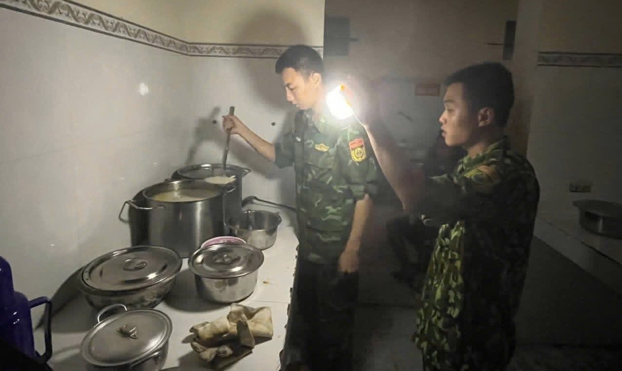 Bà con được bố trí ổn định trong các khu sơ tán an toàn. Cán bộ, chiến sĩ cùng lực lượng địa phương tổ chức nấu hàng trăm suất cháo, mì tôm nóng phục vụ người dân. Dù mất điện, trời mưa lớn, các bếp ăn vẫn đỏ lửa.