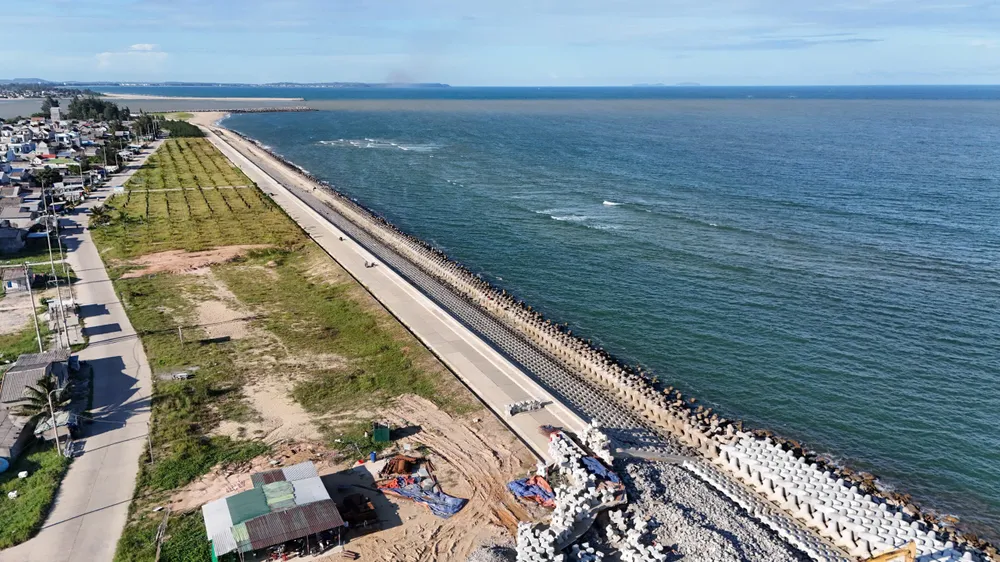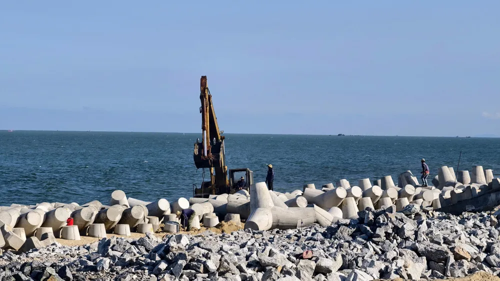 Trong khi đó, tại cửa Sa Cần thuộc xã Vạn Tường, dự án khắc phục sạt lở cũng được triển khai khẩn cấp nhằm bảo vệ khoảng 100 hộ dân với gần 300 nhân khẩu trước nguy cơ triều cường, sóng lớn.