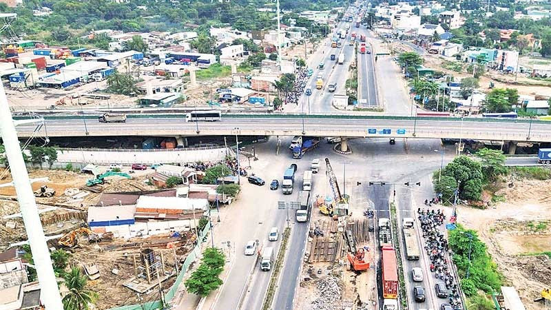 Thi công nút giao thông Mỹ Thủy - một trong những công trình giao thông trọng điểm của Thành phố Hồ Chí Minh. (Ảnh THẾ ANH)