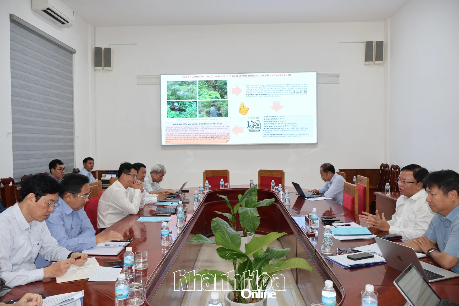 Tại cuộc họp, đại diện các sở, ban, ngành, đơn vị tư vấn đề xuất UBND tỉnh trước mắt triển khai phương pháp xử lý nước rỉ rác ô nhiễm bằng phương pháp hồ sinh học, kết hợp thực vật thủy sinh. Để xử lý triệt để nước rỉ rác tại bãi rác Rù Rì, phục hồi môi trường và tạo quỹ đất sạch, Ban Quản lý Dự án phát triển tỉnh đề xuất UBND tỉnh xem xét kêu gọi nhà đầu tư xây dựng Dự án Nhà máy điện rác tại bãi chôn lấp rác Lương Hòa để đốt rác tồn đọng tại bãi rác Rù Rì, bãi chôn lấp rác Lương Hòa (giảm thiểu chi phí vận chuyển) và rác thu gom tại các khu vực phía Bắc tỉnh Khánh Hòa sau khi nhà máy điện rác hoàn thành đưa vào sử dụng.