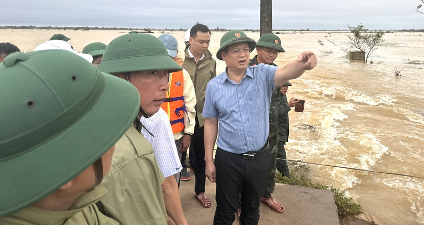 Phó Chủ tịch Thường trực UBND TP. Huế Nguyễn Thanh Bình chỉ đạo khắc phục đê bị vỡ tại xã Quảng Điền