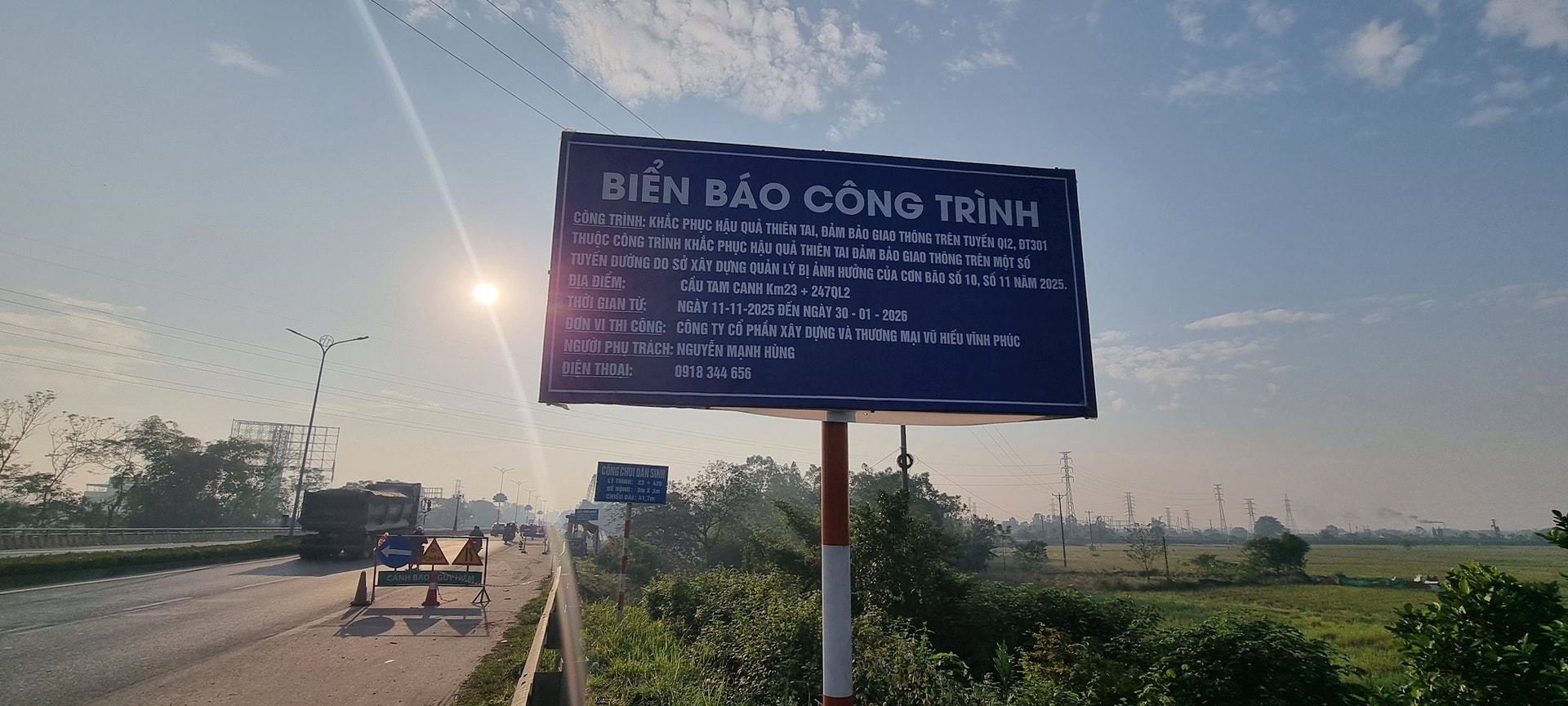 Theo thông tin trên biển báo công trình, hạng mục sửa chữa tại Cầu Tam Canh nằm trong dự án khắc phục hậu quả thiên tai, đảm bảo giao thông trên tuyến QL2, ĐT301 thuộc công trình khắc phục hậu quả thiên tai đảm bảo giao thông trên một số tuyến đường do Sở Xây dựng tỉnh Phú Thọ quản lý bị ảnh hưởng bởi cơn bão số 10, 11 năm 2025. Công trình được triển khai từ ngày 11/11/2025 đến 30/01/2026 tại Km23+247 Quốc lộ 2, do Công ty Cổ phần Xây dựng và Thương mại Vũ Hiếu Vĩnh Phúc thi công.