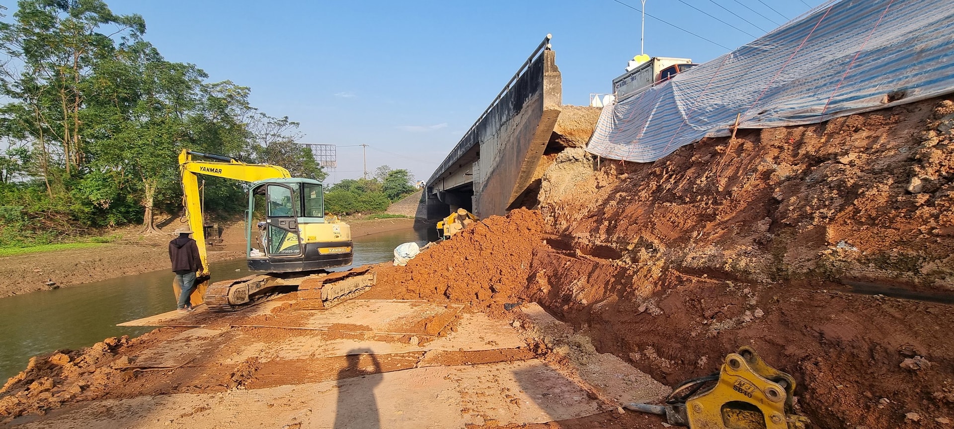 Theo ghi nhận của phóng viên, một tứ nón và một phần đường dẫn bị sạt lở nghiêm trọng. Để đảm bảo an toàn cho phương tiện lưu thông, lực lượng chức năng và đơn vị thi công đã bố trí rào chắn, cọc tiêu, dây cảnh báo và thực hiện phân luồng giao thông qua khu vực.