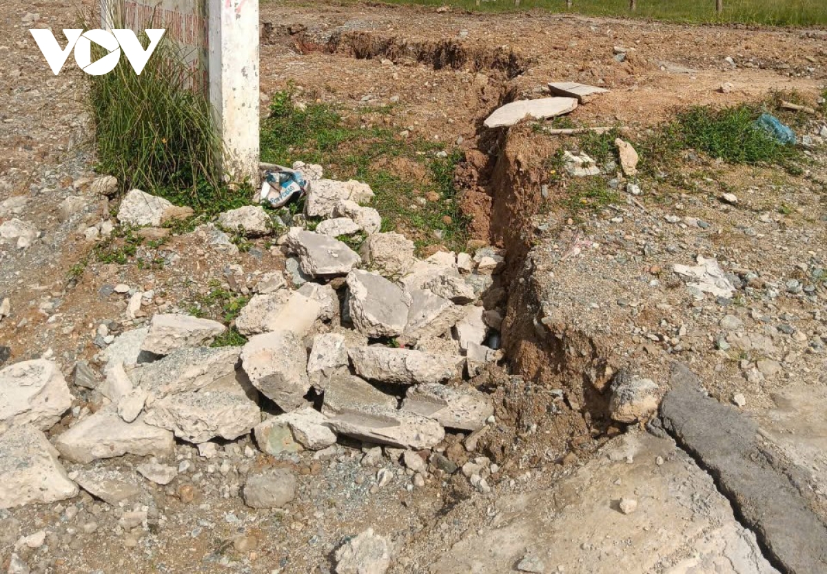 Vết nứt tại Km1428+800 đoạn qua tỉnh Quảng Ngãi.