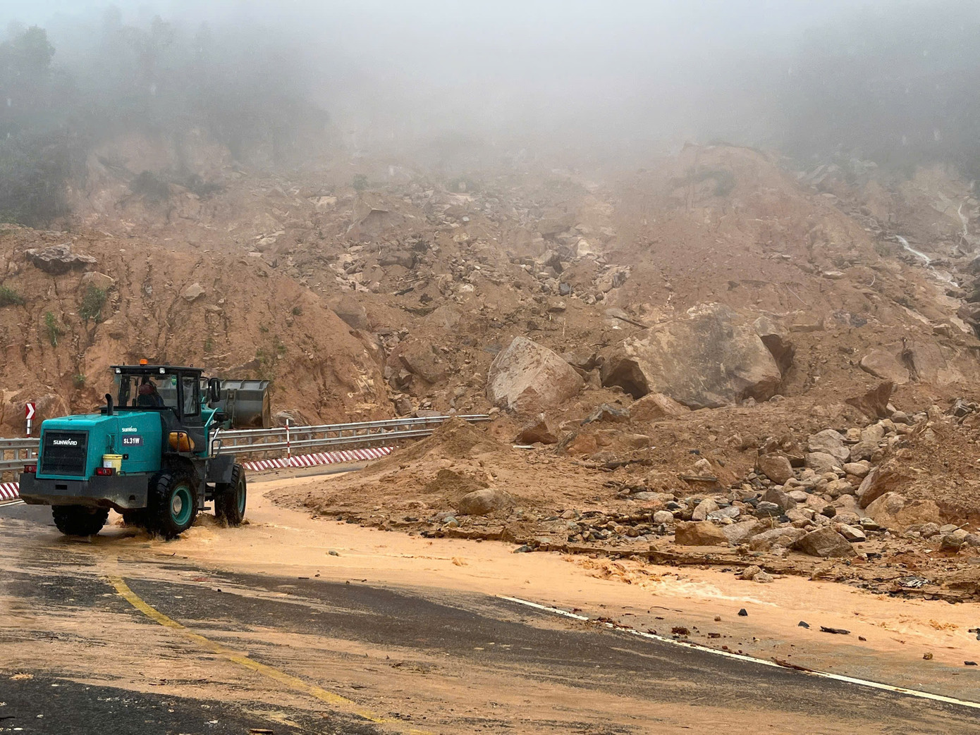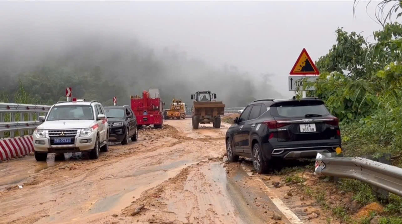 Do xuất hiện thêm một số điểm sạt lở mới trên đèo Khánh Lê khiến lực lượng chức năng buộc phải tìm phương án tiếp cận khác để đảm bảo an toàn.