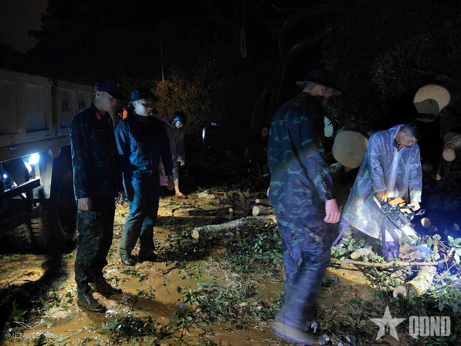 Các lực lượng quyết tâm hoàn thành công tác khắc phục sạt lở trong đêm 19-11.