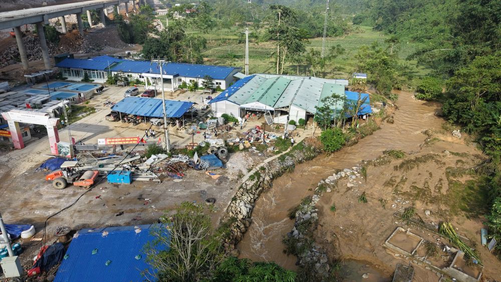 Toàn cảnh vị trí Ban điều hành Dự án xây dựng cao tốc Đồng Đăng - Trà Lĩnh bị lũ quét tàn phá.