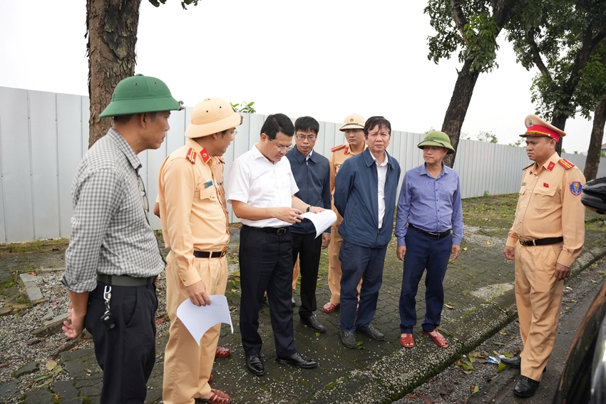 Phó Chủ tịch UBND thành phố Hoàng Hải Minh kiểm tra thực địa và xem báo cáo các điểm hư hỏng trên toàn tuyến