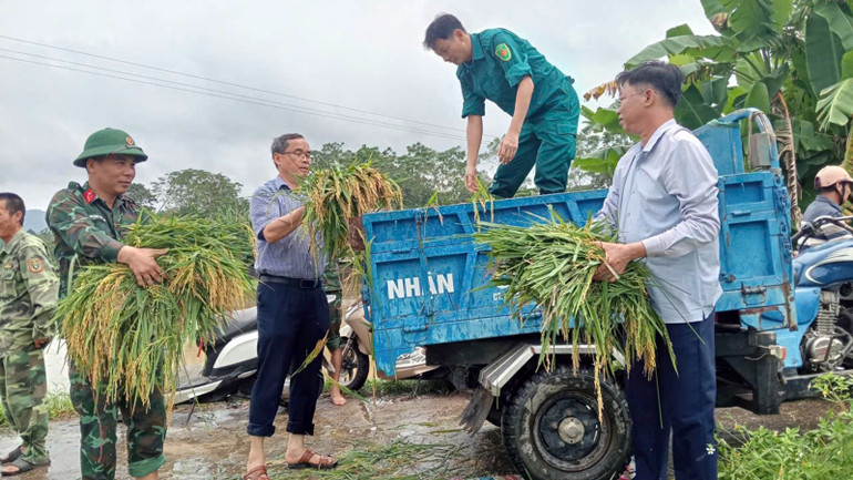 Ngay sau khi nước rút, các ngành, địa phương đã huy động lực lượng hỗ trợ người dân thu hoạch lúa, vệ sinh chuồng trại, xử lý môi trường chăn nuôi; tập trung khắc phục sạt lở, sửa chữa các tuyến đường giao thông.