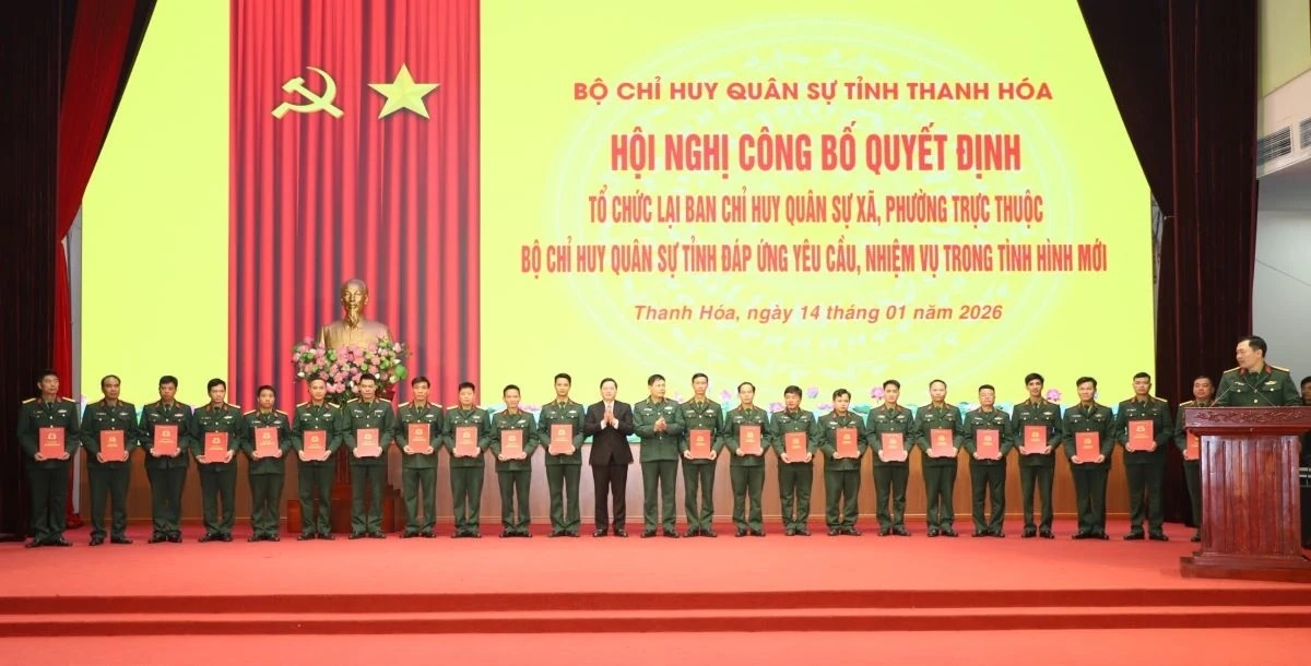 Tại hội nghị, đại diện lãnh đạo Bộ Chỉ huy Quân sự tỉnh Thanh Hóa đã công bố Quyết định của Bộ trưởng Bộ Quốc phòng về việc tổ chức lại Ban Chỉ huy Quân sự xã, phường, đặc khu trực thuộc Bộ Chỉ huy Quân sự tỉnh, thành phố và Bộ Tư lệnh Thủ đô Hà Nội, Bộ Tư lệnh Thành phố Hồ Chí Minh; Quyết định của Tổng Tham mưu trưởng Quân đội nhân dân Việt Nam về việc ban hành biểu tổ chức, biên chế của Ban Chỉ huy Quân sự xã, phường, đặc khu.
