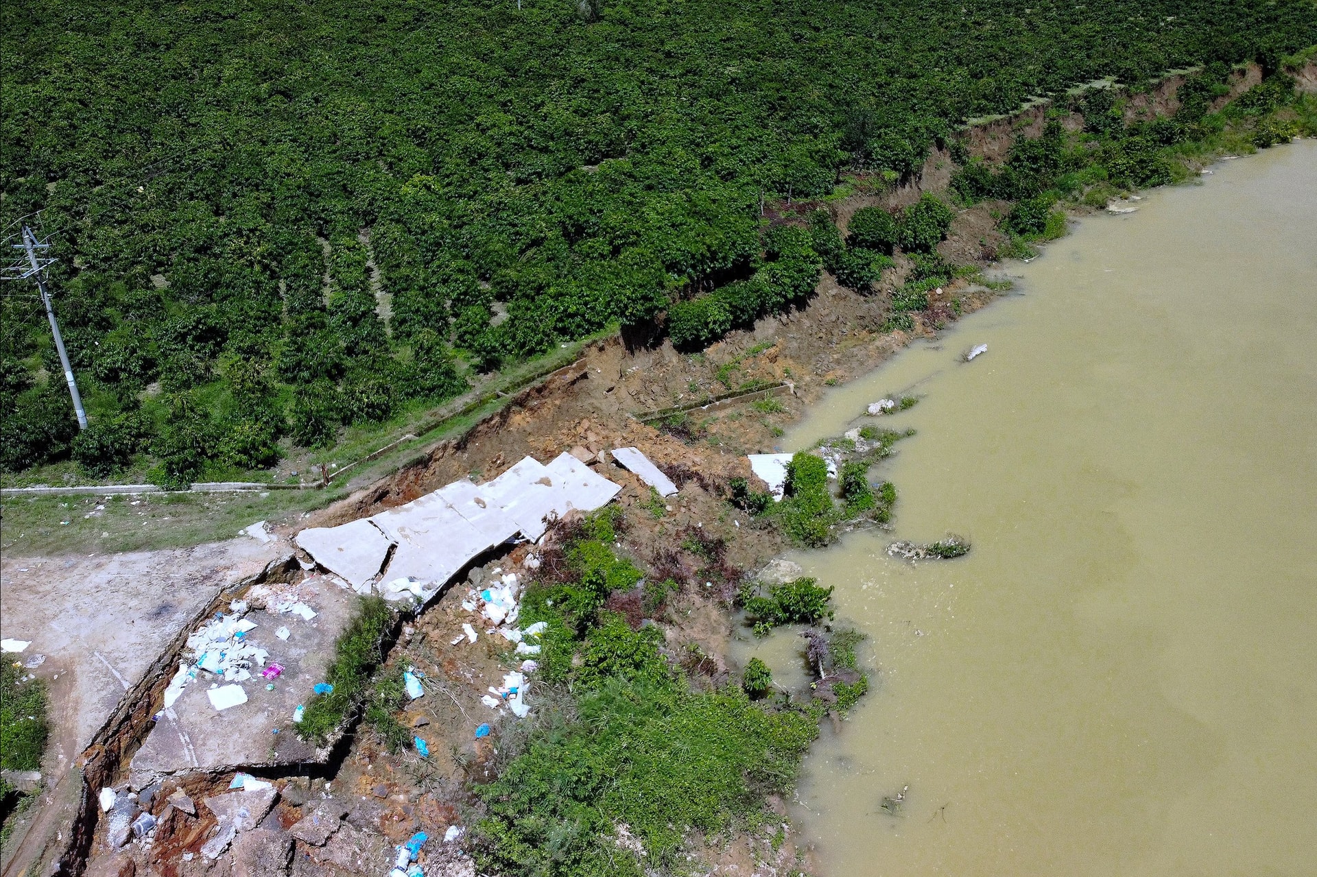 Nhiều tuyến đường giao thông và kênh mương thủy lợi ven sông Krông Nô bị sạt theo dòng nước